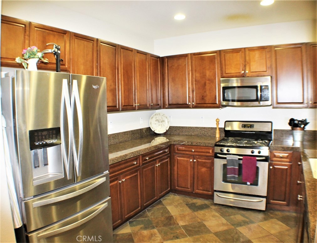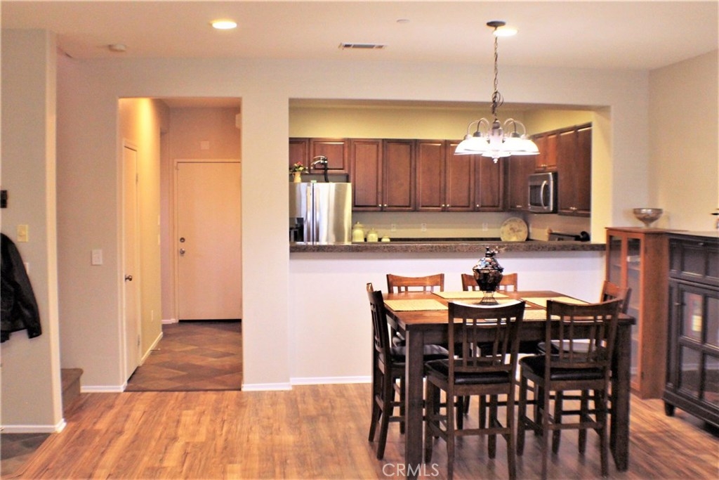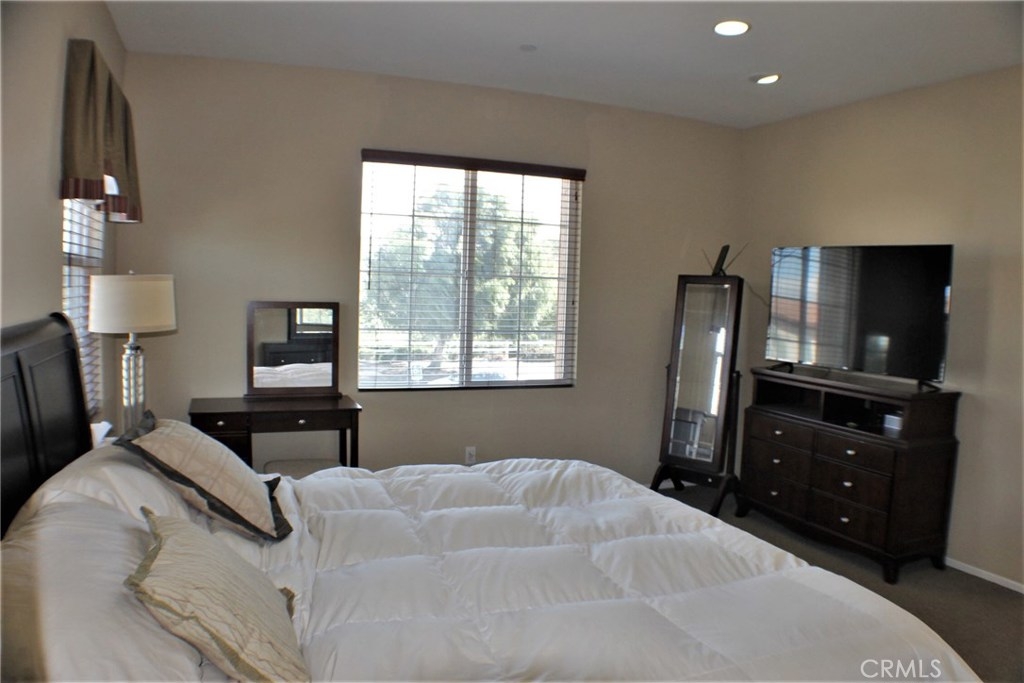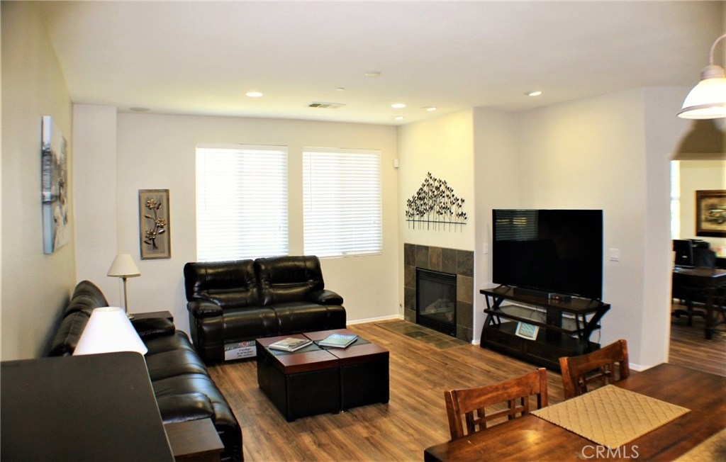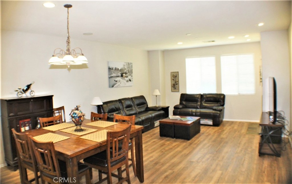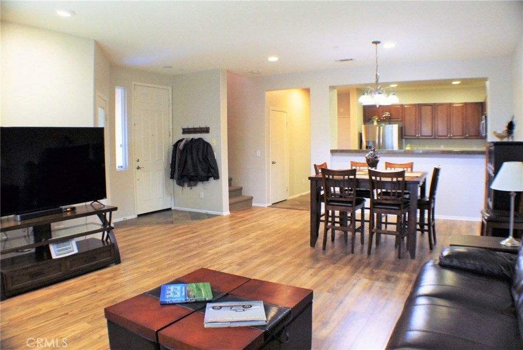 Contemporary, Turnkey South Moreno Valley Condo. So many great attributes: TWO Master Bedrooms make sharing this home with a friend or family member ideal. Each Master Bathroom has dual sinks, tub/shower combo and Walk in Closets. There's an add'l bedroom upstairs between the Two Masters. Brand new wood laminate flooring downstairs, Berber carpet Upstairs. Fresh Paint to add the WOW Factor, Flagstone type Tile in Kitchen and Entry. Den Downstairs - could be used as a bedroom if a closet were installed. Indoor Laundry, Powder Room Downstairs. Kitchen is roomy and open to the Dining Room & Living Room. Kitchen has Granite Countertops, Stainless Steel Appliances and Breakfast Bar. Attached 2 car garage with a Charging Station for your Electric Car. This is the largest condo in Moreno Valley and there were only 3 or 4 of these units built. This secure, gated community features beautiful views of the distant mountains and nearby hills and it's located near shopping, restaurants, grocery and drug stores & MV College. Elementary School is Victoriana, rated the highest of any MV school. Whether you're looking for a starter home or an investment, this great property checks all the boxes.