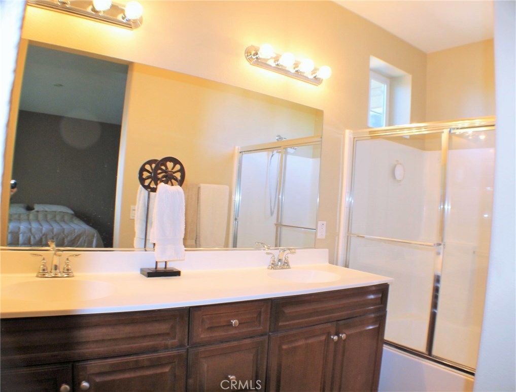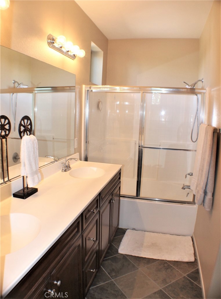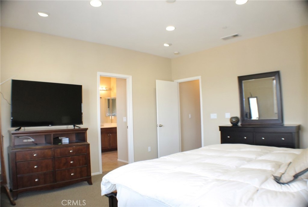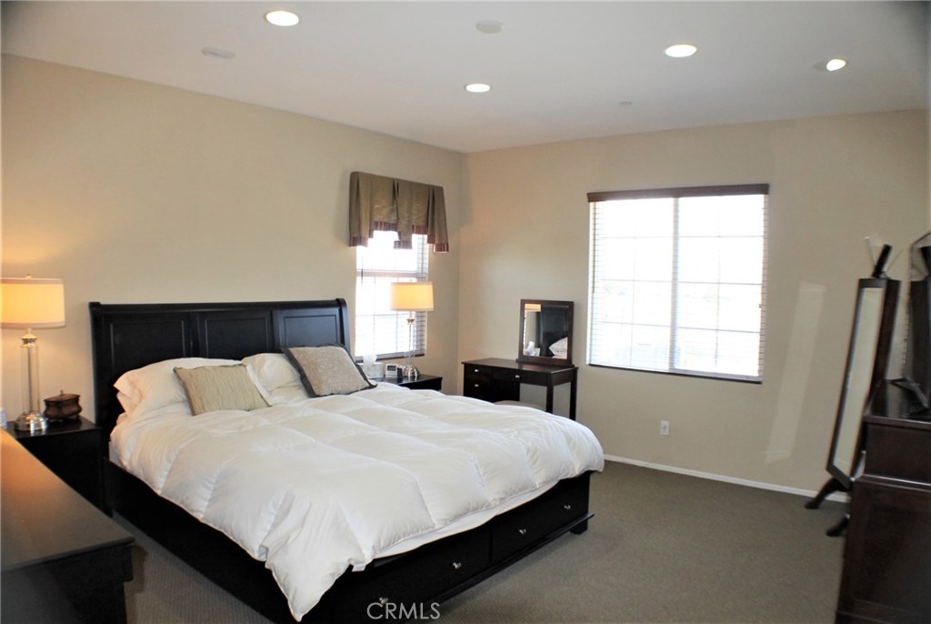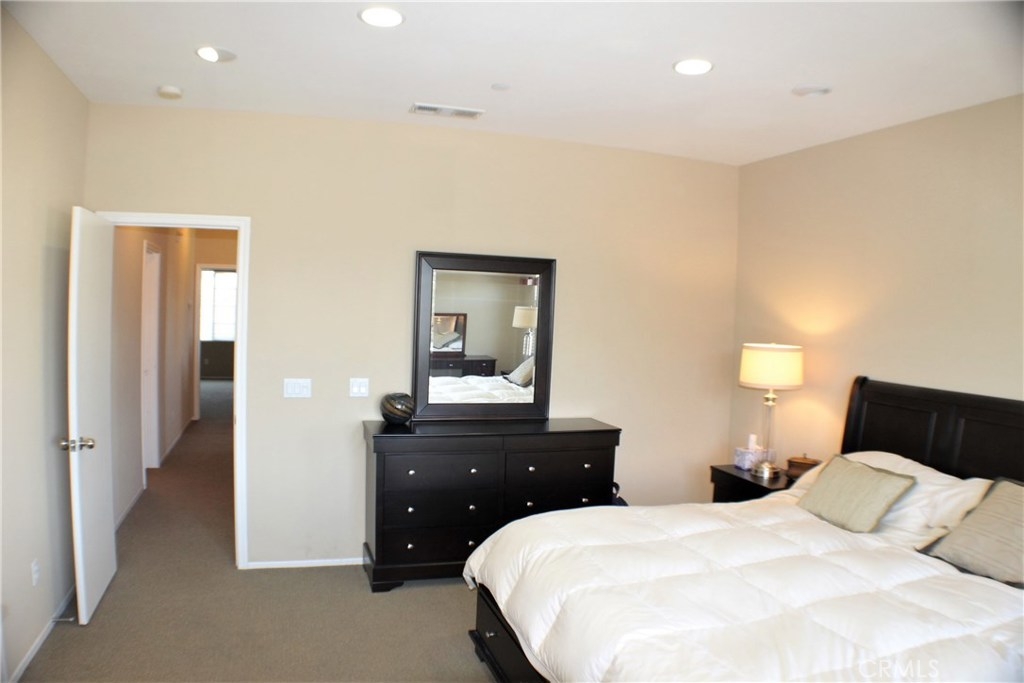 Contemporary, Turnkey South Moreno Valley Condo. So many great attributes: TWO Master Bedrooms make sharing this home with a friend or family member ideal. Each Master Bathroom has dual sinks, tub/shower combo and Walk in Closets. There's an add'l bedroom upstairs between the Two Masters. Brand new wood laminate flooring downstairs, Berber carpet Upstairs. Fresh Paint to add the WOW Factor, Flagstone type Tile in Kitchen and Entry. Den Downstairs - could be used as a bedroom if a closet were installed. Indoor Laundry, Powder Room Downstairs. Kitchen is roomy and open to the Dining Room & Living Room. Kitchen has Granite Countertops, Stainless Steel Appliances and Breakfast Bar. Attached 2 car garage with a Charging Station for your Electric Car. This is the largest condo in Moreno Valley and there were only 3 or 4 of these units built. This secure, gated community features beautiful views of the distant mountains and nearby hills and it's located near shopping, restaurants, grocery and drug stores & MV College. Elementary School is Victoriana, rated the highest of any MV school. Whether you're looking for a starter home or an investment, this great property checks all the boxes.