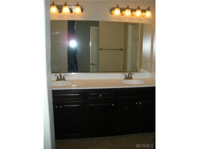 Lake view gated community- Aspen Hills. Total 1693 square feet. This home features upgraded kitchen cabinets, granite countertops, large living room with cozy fireplace, spacious bedrooms, 2 large master bedrooms with big walk-in closet and 2.5 baths. 2 oversize car garages and a private courtyard. Walk to shopping area, schools & RCC campus. Great school area: Val Verde School District.