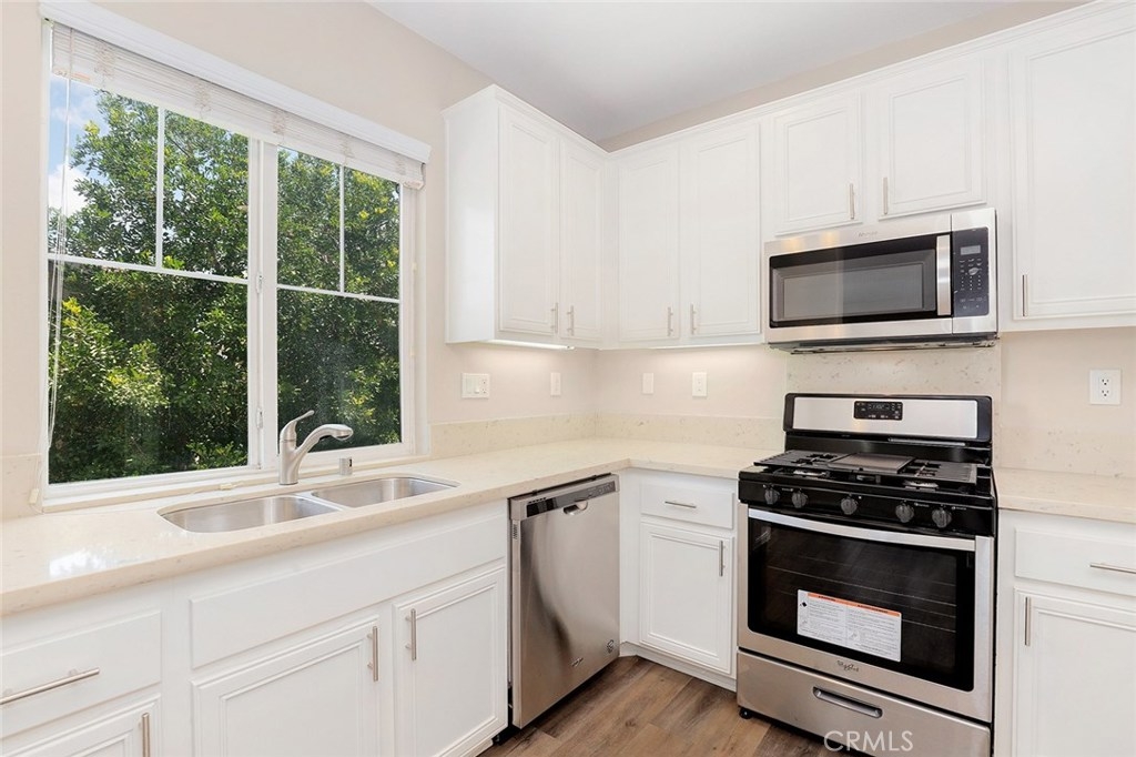 Located in Moreno Valley Lakes, a quiet and parklike gated community which features parks, playgrounds, and an association pool. This end unit welcomes you with a quick flight of stairs leading to what you will find feels like single-level living. Spacious and well lit with natural light, this property has it all; a direct access two car garage, a large patio for entertaining, and a walkout balcony to enjoy the views. This property has great access to the 60 and 215 freeways and is nestled between the Lake Perris recreational area, nearby shopping centers and restaurants, parks, and local schools including Moreno Valley College. This two bedroom, two bath condo looks like a brand new model with upgraded carpet, fresh paint, and upgraded stainless steel appliances.