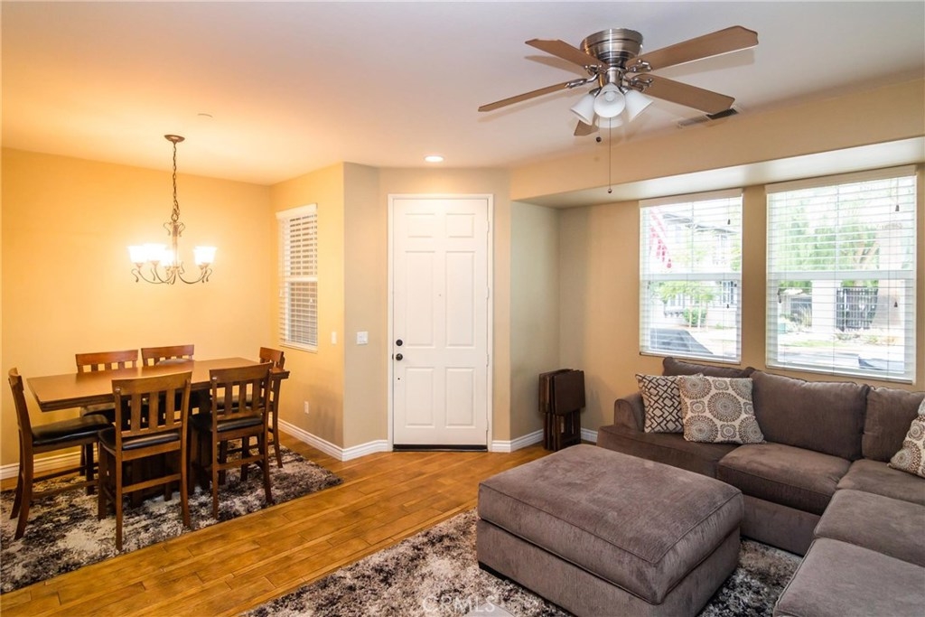 Lovely move in ready two story, 2 bedroom, 2.5 bath condo located within the gated community of Iris Landing located at Moreno Valley Ranch. This property features a kitchen with newer stainless steel appliances & granite kitchen countertops. Recently painted cabinets in the kitchen and baths. Balcony off the master bedroom and a patio off the living room. Upgraded tile flooring throughout the downstairs and in bathrooms, with carpet on the staircase and in both bedrooms. window coverings. Ceiling fans in master bedroom and living room. Central air and heat. 2 car attached garage with direct access into the home with built in cabinets and epoxy flooring. *HOA Fee includes Water, Trash, and Sewer.* Home is also conveniently located close to Moreno Valley College, shopping centers, hospitals, parks and more. Plus only a few minutes to Lake Perris State Recreation Area for family fun! This is a perfect starter home or for someone who is looking to downsize. This is a must see home!
