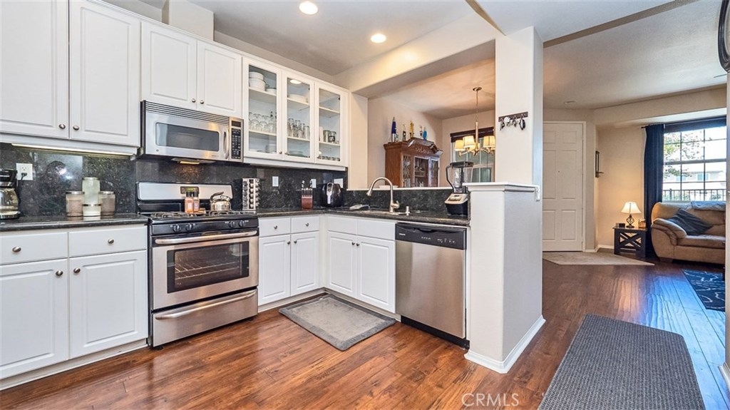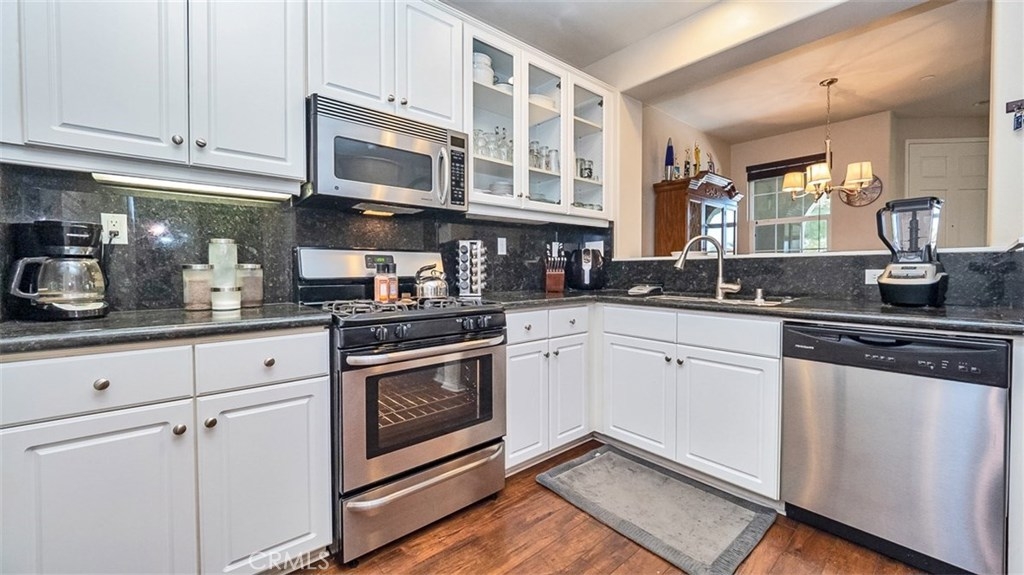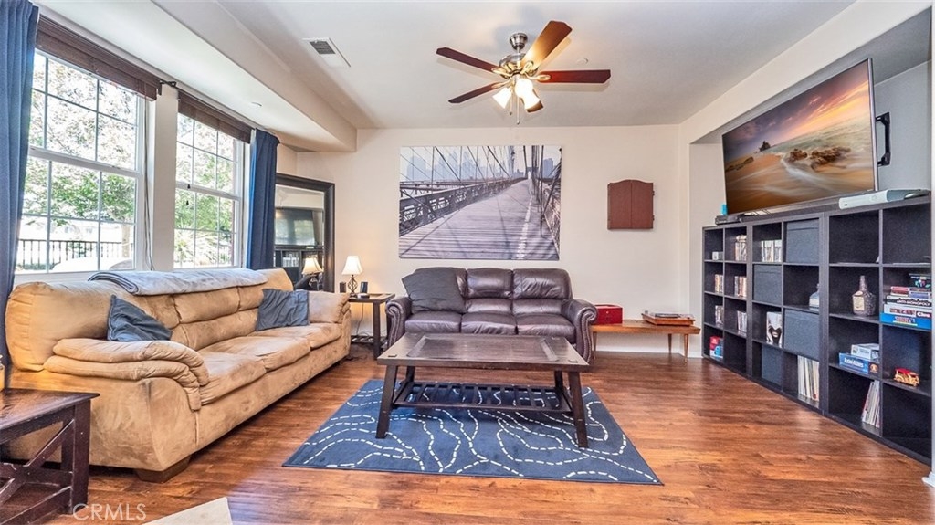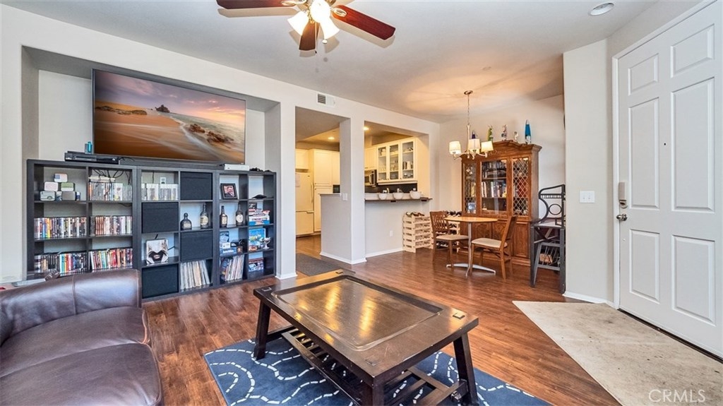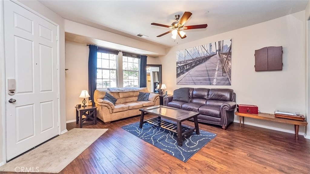 This beautiful condo in the Iris Landings gated community of Moreno Valley was built in 2006, remodeled in 2015 and again freshly painted. This condo features hardwood laminate flooring, tile bathrooms and carpeted upstairs. The kitchen has recessed lighting, granite countertops and extended storage space with stainless steel appliances. Dining room and living room have a spacious open feel. Offering 2 large bedrooms with each their own attached full bathroom and a guest bathroom downstairs. The master bathroom has a walk in closet and dual vanities. Large indoor laundry room is located upstairs central to the bedrooms with additional storage space. 2 car attached garage make parking convenient, with guest parking only steps away. HOA amenities include Moreno Valley Ranch with a pool, spa, basketball court, gym, BBQ area and more. Centrally located next to Moreno Valley College, the supermarket, restaurants, transportation and more. Dont miss out, schedule your showing today!