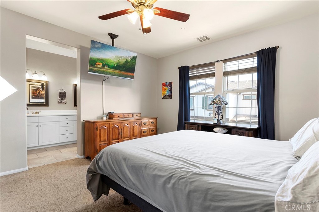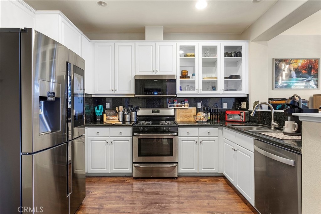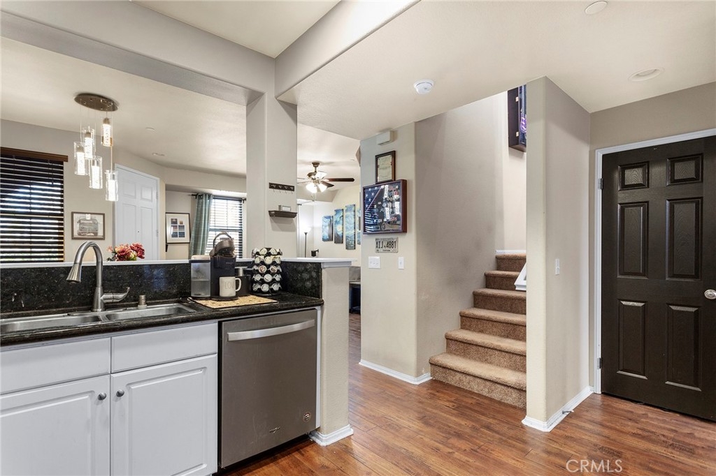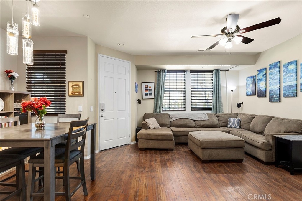 This beautiful condo in the Iris Landings gated community of Moreno Valley features hardwood laminate flooring, tile bathrooms and carpeted upstairs. Dining room and living room have a spacious open feel. Offering 2 large bedrooms with each their own attached full bathroom and a guest bathroom downstairs. The master bathroom has a walk in closet and dual vanities. Large indoor laundry room is located upstairs central to the bedrooms with additional storage space. HOA amenities include Moreno Valley Ranch with a pool, spa, basketball court, gym, BBQ area and more. Centrally located next to Moreno Valley College, the supermarket, restaurants, transportation and more. Dont miss out on this beautiful home!