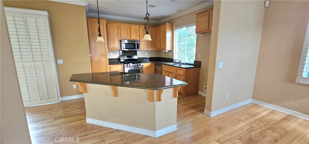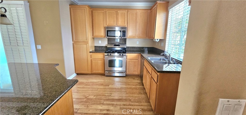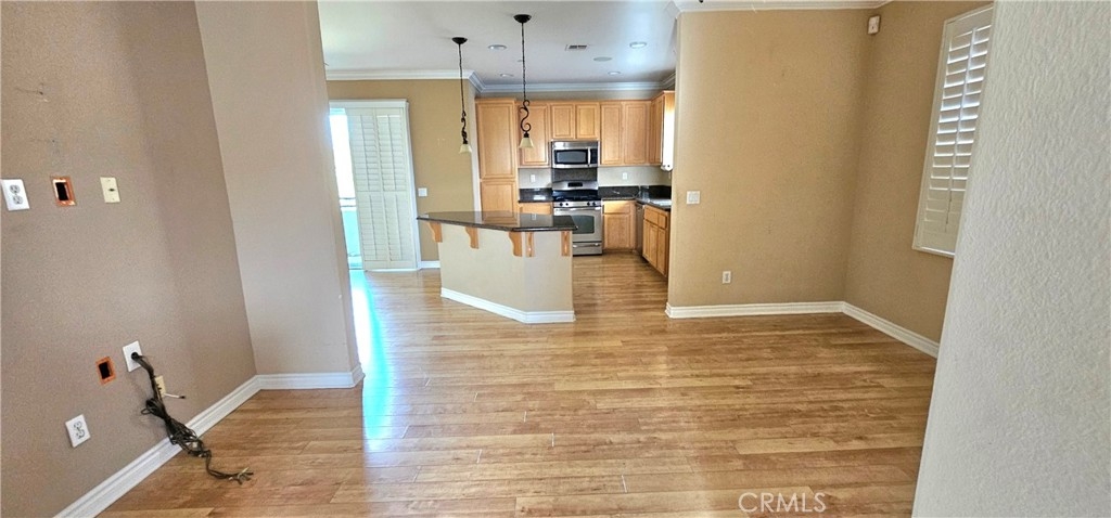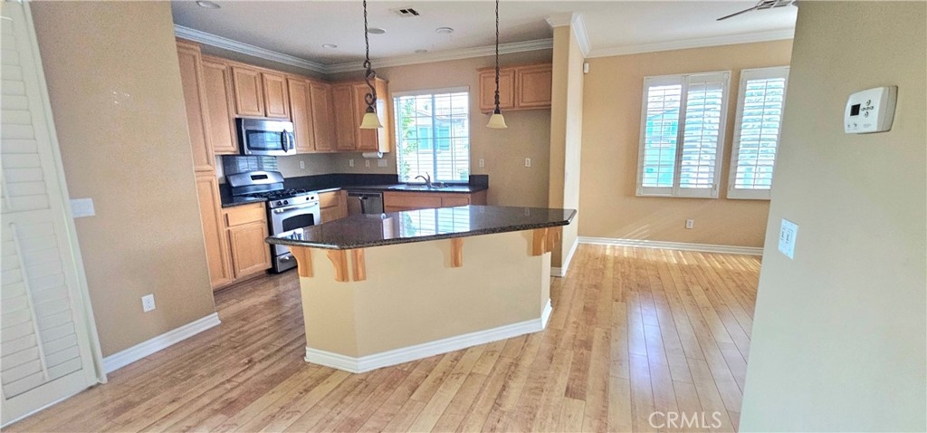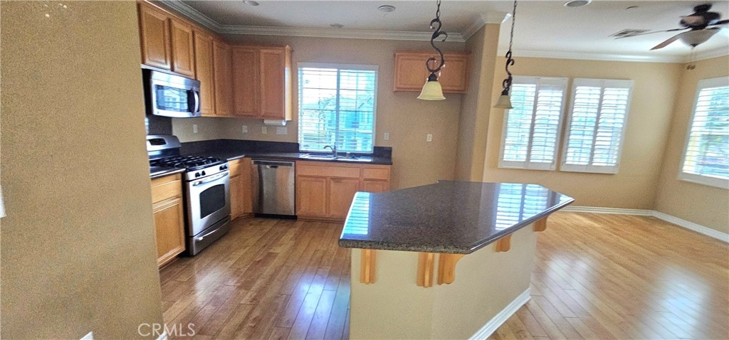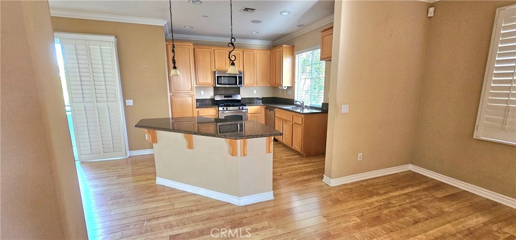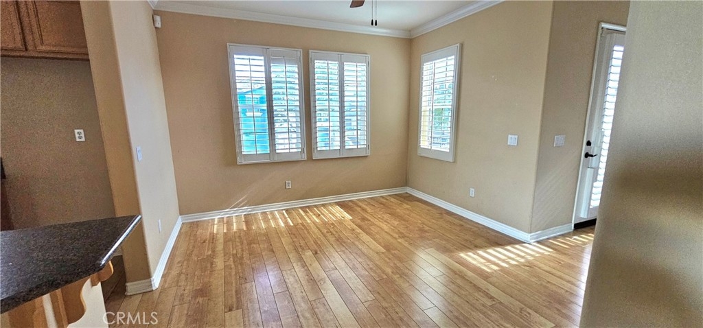 Come see this gorgeous townhome in the master planned community of Iris Landing in Moreno Valley. This beautiful end until features a spacious open kitchen with granite counter tops, large island, wood flooring, crown molding and wood shutters. Stainless steel appliances. Laundry conveniently located upstairs. Large primary bedroom with exceptional bathroom. Great porch area downstairs and two balconies. 2-attached garage. Close to shopping and transportation.