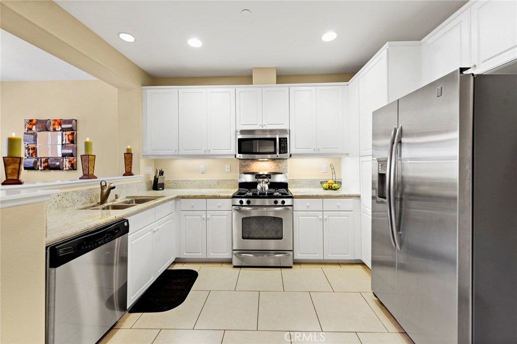 This two story condo is very well-maintained, turnkey ready for you to call home. Private and gated community. Kitchen of Your Dreams - clean, bright white cabinets with storage galore, granite counter-tops, stainless steel appliances, open breakfast bar area into eat-in area and living room. Perfect for entertaining. Half bath downstairs for your guest. Two bedrooms up stairs, both have attached full bathrooms. Master bedroom suite offers large walk-in closet and open bathroom. Secondary bedroom is spacious and double mirrored closet doors with attached full private bathroom. Laundry room is upstairs complete with plenty of storage and folding space. Two car attached garage features direct access into home. Front porch offers view of the water, space for relaxing time at home. Gated community with gorgeous pool, sports courts, water splash pad, playground, exercise room, picnic area and professional landscaping. Home is conventionally located near, Lake Perris Recreational Area, Hospital, College and Shopping.