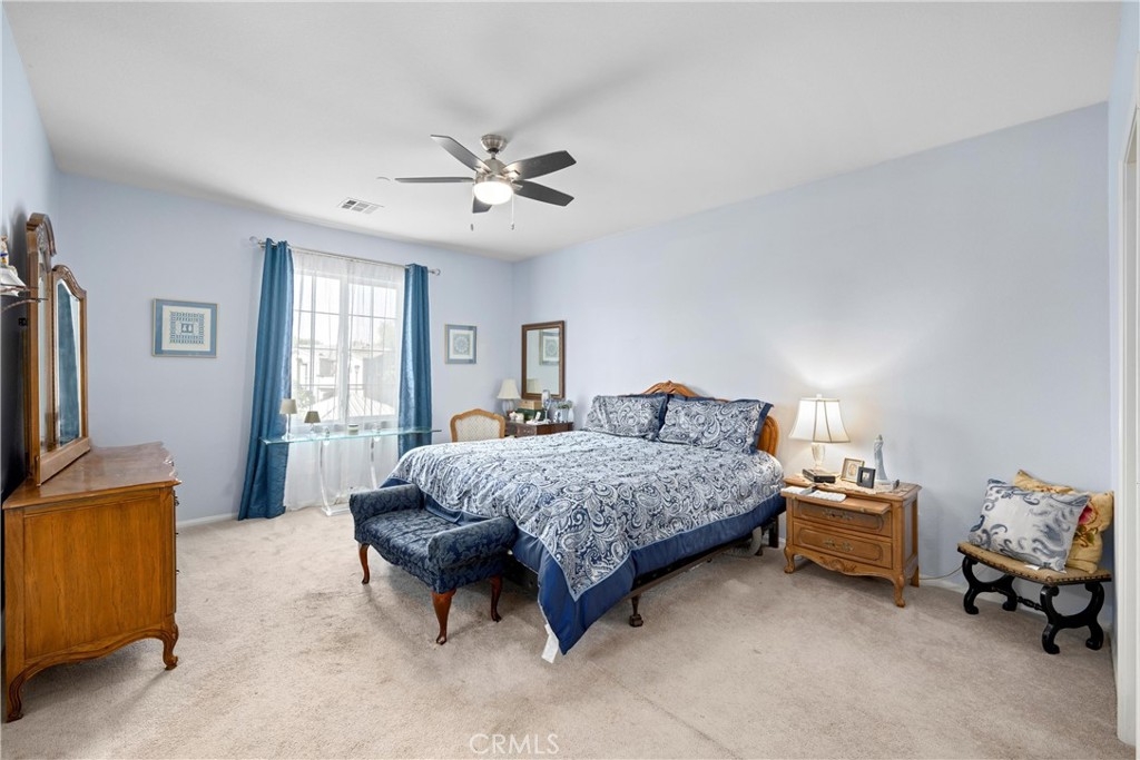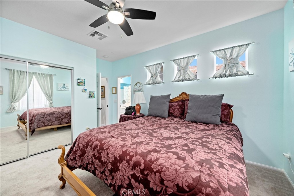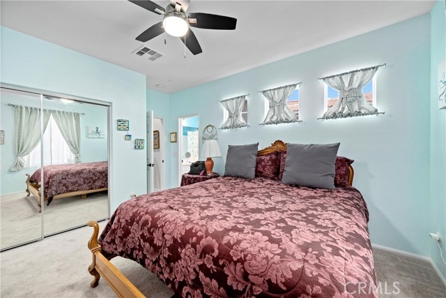 Welcome to your dream home in the gated community of Iris Landing within the greater Moreno Valley Ranch HOA! This beautifully maintained 2-bedroom, 2.5 bathroom townhome-style condo boasts dual master bedrooms, each with its own en-suite bathroom, ensuring comfort and privacy. Enjoy stunning views of the serene pond and majestic mountains from the front, with no neighbor in front ensuring added tranquility. Step inside to discover a spacious and inviting living space perfect for relaxation and entertainment. The open floor plan seamlessly connects the living, dining, and kitchen areas, offering a modern and airy feel. Both master bedrooms are generously sized, with ample natural light streaming in through large windows. Enjoy the convenience of a two-car garage, providing ample storage and parking space. Living in Iris Landing means you’ll have access to an array of exceptional amenities provided by the Moreno Valley Ranch HOA, including a 35-acre lake, a large community pool, fitness centers, a resident-only recreation center, and numerous private and public parks. Nestled into the hills of Moreno Valley, this 3,800-home master-planned community offers the perfect blend of tranquility and convenience. Don't miss out on this unique opportunity to own a piece of paradise in one of Moreno Valley's most sought-after neighborhoods!
