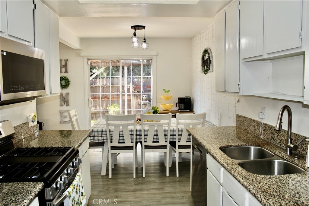 Welcome to Carnation Lane! This attractive 3 BEDROOM, 2 BATH, SINGLE LEVEL, 2 CAR GARAGE, Turn Key Condo is perfect for a FIRST TIME BUYER, or INVESTOR! The open floor plan showcases the complete home with newer vinyl flooring and beamed ceilings and 1 year old roof. The Heart of the Home Kitchen is open to Dining Area which has been renovated with granite countertops, contemporary lighting, new fixtures and sparkling Stainless appliances. All of this newness makes you want to call this home and have fun to cook and entertain for family and guests. You'll also enjoy 2 updated bathrooms with fresh paint and accessories. NO CLIMBING STAIRS, making it accessible and convenient. Don't miss the opportunity to make this adorable condo your own. Nicely located near the 60 fwy, shopping centers, grocery stores and schools. At this price point, it won't last!