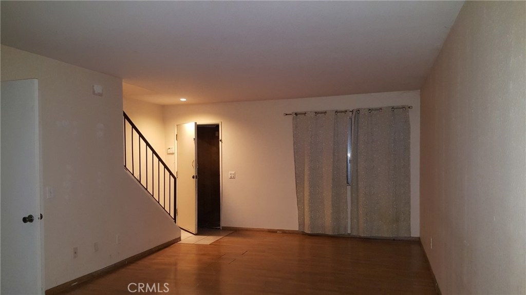 With an open floor plan and spacious rooms, the home feels light and bright. Kitchen and dining area opens to a private patio area. You can enjoy your private patio in the morning and evening. Laminate wood floor throughout the first and 2nd floor. Unit has downstairs bathroom with laundry area. Upstairs has two spacious bedrooms and a bath with entry from hall or bedroom. A designated garage with storage area, and one additional assigned parking space for plenty of room for your vehicles or storage. HOA fee covers water, trash, and outside maintenance. Easy access to the 60 freeway, shopping, restaurants, and downtown.