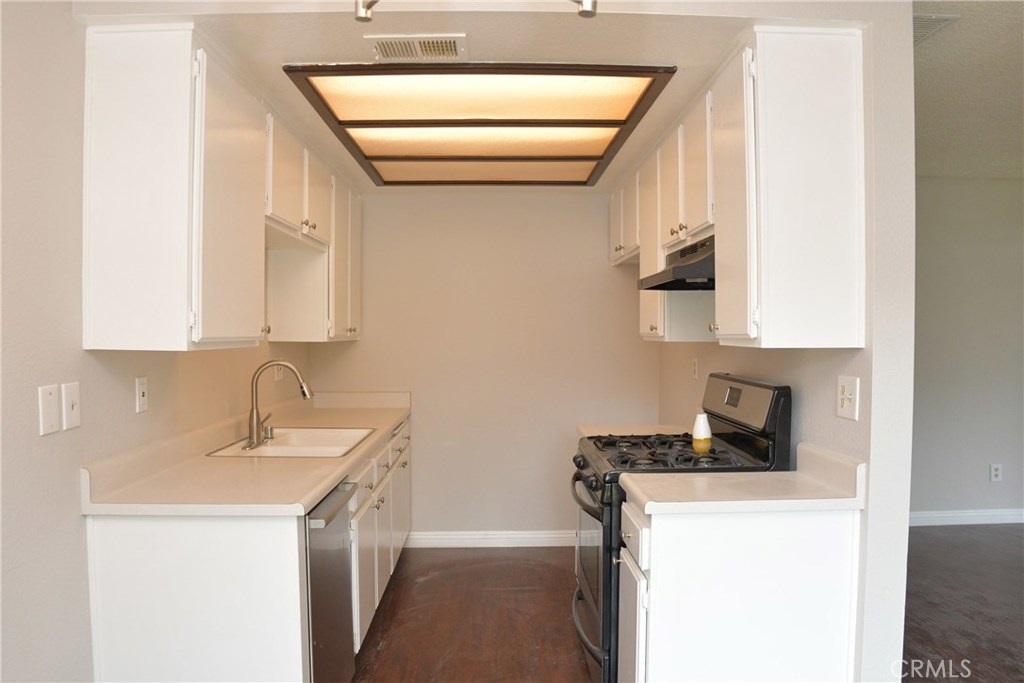 Single story end unit. Great floor plan, Large living room, dining area, Updated kitchen, Newer paint and wood flooring, New sliding glass door, 3 bedrooms and 2 baths. Large fenced patio, Two car garage. Close and convenient to Shopping and Freeways