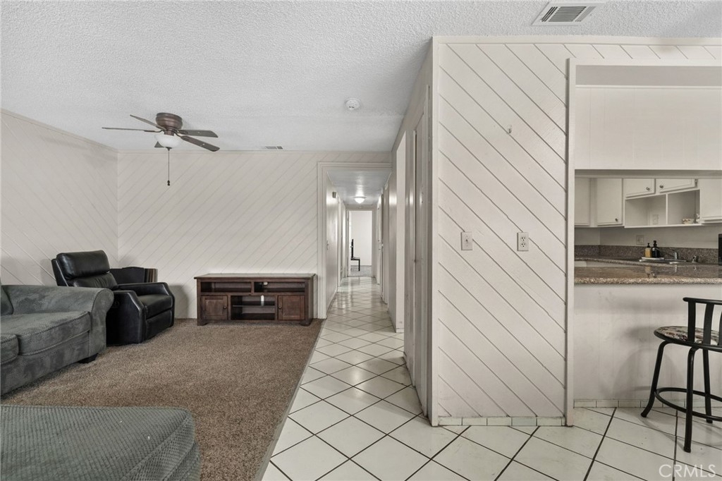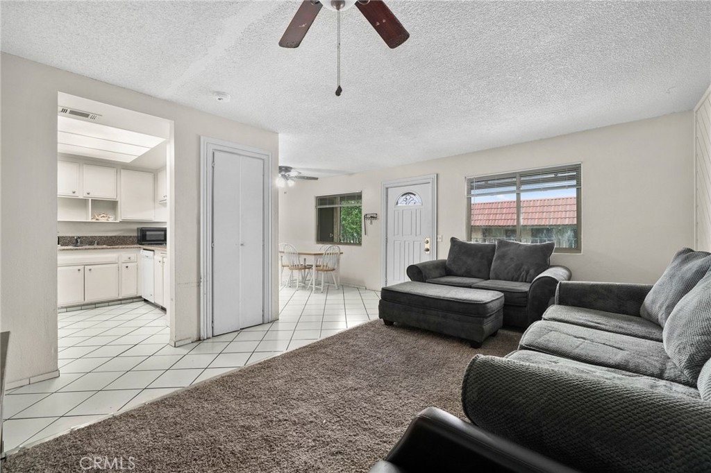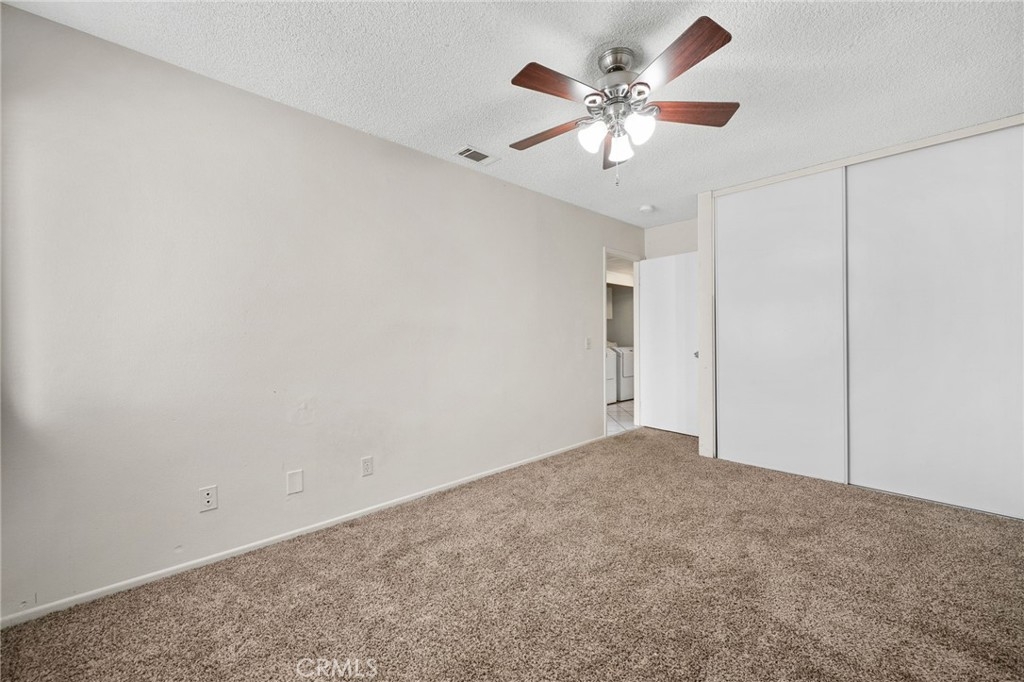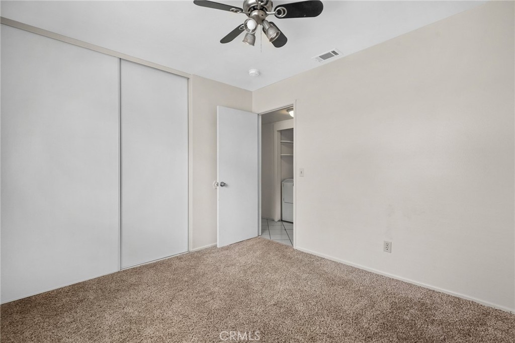 Welcome Home! This beautifully maintained 3-bedroom, 2-bath home offers the convenience of single-level living with thoughtful upgrades throughout. The kitchen features granite countertops and a spacious pass-through to the dining area, perfect for entertaining. Enjoy the ease of your own dedicated laundry area—washer and dryer included! Primary bedroom at the end of the hall is very spacious and offers two closets for extra storage. Ceiling fans are installed throughout the home to keep things comfortable year-round. Located directly above your private two-car garage, this home combines practicality with privacy. Ideally situated near shopping, dining, and quick access to the 60 Freeway, this is one you won’t want to miss!