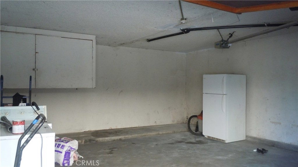 Live on one level in this 3 bedroom 2 bath condo, for about the cost of rent! The condo complex has a bank of garages, and this unit sits on top of the garages - (2 garages included with this unit). The condo has newer laminate flooring in the main living area and bedrooms, a large private patio for your outside living, interior laundry area with full size washer & dryer - included; and the refrigerator is also included. Bring your family and your clothes!! Minutes from the freeway; and close to shopping & dining. Taxes are low, and the HOA covers the water, trash, and sewer fees. LOW COST LIVING!!