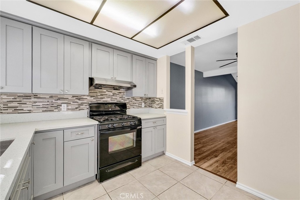 Welcome to the Olivewood Condominium gated community. Beautifully remodeled unit offers 2 bedrooms, 2 bath with two parking spaces. Open floor plan with wood and tiling flooring throughout, remodeled kitchen with quartz counters and stainless steel dishwasher, custom remodeled bathrooms, and two large bedrooms. Laundry closet inside a huge plus the condo and a private patio. This community features a pool, spa, clubhouse, and mail room and ample guest parking. Low tax rate, walking distance to parks, shopping, schools, and the 60 fwy just minutes away. Move in ready and the least expensive way to become a homeowner in Moreno Valley.