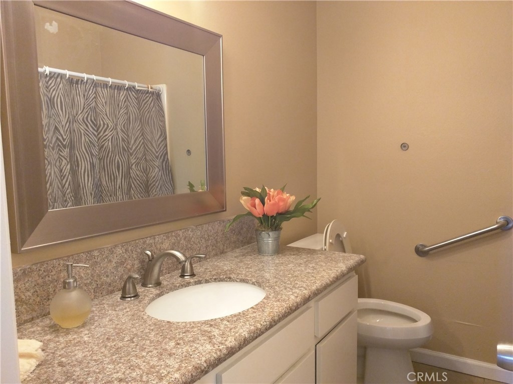 Why renting when you can buy this move-in ready and save money? All in single story with no one above or below you, upgraded 2 bedrooms, 2 bathrooms inside gated community with green area & HOA pool. All tile and new laminate wood floor with no carpet. New neutral color painting. New granite counter in kitchen and both bathrooms. Master bedroom with mirror closet. High ceiling wood ceiling in living room and open dining area.