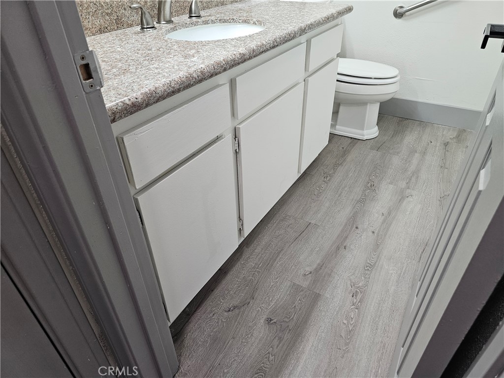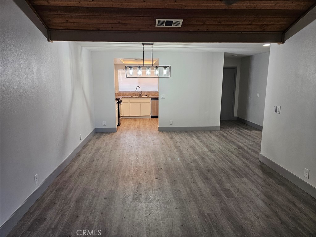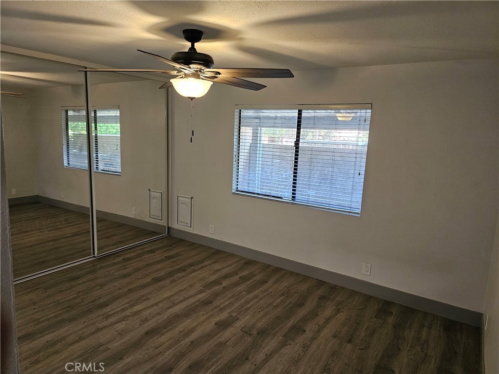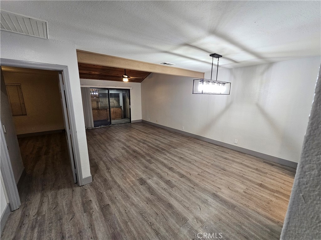 Beautifully Upgraded Single-Story Condo in Gated Community This stunning single-story condo offers comfort, style, and privacy with no neighbors above or below. Featuring beautiful laminate flooring throughout, granite countertops, and a spacious family room with soaring wood-beamed ceilings that flows seamlessly into the dining area. Two generously sized bedrooms provide ample space, while the private fenced-in covered patio is perfect for pets or outdoor relaxation. Located in a quiet, secure setting within a gated community that includes green spaces and a refreshing HOA pool and spa. Private Dog Park. HOA covers water, trash, outside maintenance. Two parking spots per unit.