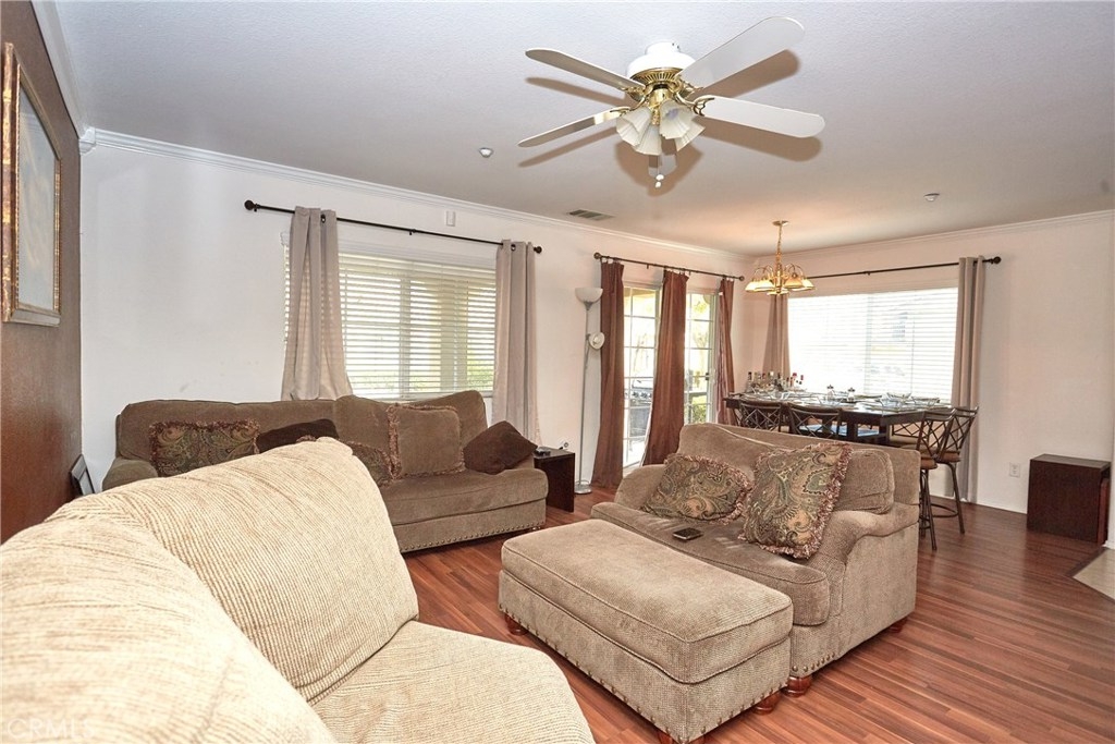 Welcome to the desired gated community of Palacio De Oro, this 3-bedroom 3 baths Townhome has an upgraded kitchen overlooking the family room. With one bedroom on the 1st level, it makes for the perfect guest room or in-law quarters. It has a large covered patio facing the courtyard that’s perfect for family gatherings. Off the kitchen, there is Laminate floors carried throughout the first floor up the staircase and met by carpet on the second level. On the second level, there’s a second bedroom plus bath and at the end of the hall is a spacious master suite. The Master Suite is a retreat overlooking the courtyard with a large walk-in closet and spacious master bath. This home has a prime location within the community with close proximity to parking and courtyard views. This home has some unique advantages being walking distance to shops, restaurants, hospitals, and Perris Lake. This desired Townhome will not last!
