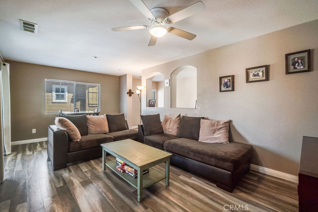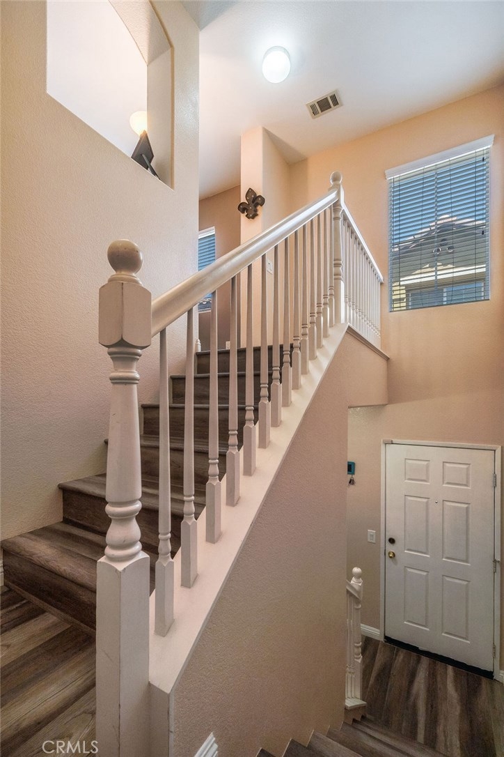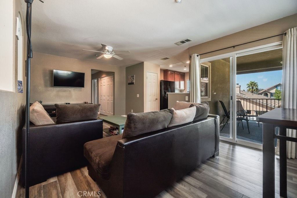 YOU'LL LOVE THIS DELIGHTFUL TWO STORY CONDO LOCATED IN THE PRESTIGIOUS GATED COMMUNITY OF PALACIO DE ORO. THIS WELL CARED FOR 2 BED/2BATH CONDO IS MOVE-IN READY. PULL INTO YOUR PRIVATE ATTACHED ONE CAR GARAGE AND ENJOY ALL THE STORAGE SPACE ON THE MAIN LEVEL. WALK UP STAIRS ON THE THE NEWLY REMODELED FLOORS THAT OPEN TO THE LARGE LIVING ROOM AREA COMPLETE WITH DINING ROOM SPACE. ENJOY AN UPGRADED KITCHEN WITH MATCHING APPLIANCES (REFRIGERATOR INCLUDED). ENJOY GATHERING IN THE GENEROUSLY SIZED BALCONY PERFECT FOR ENJOYING YOUR MORNING COFFEE OR EVENING SUNSETS. DOWN THE HALL YOU'LL FIND A FULL BATH, LAUNDRY ROOM, AND BEDROOM WITH A BUILT-IN DESK AND LOTS OF NATURAL LIGHT. THE MASTER BEDROOM BOASTS A LARGE WALK-IN CLOSET AND THE MASTER BATHROOM HAS DUAL VANITIES AND A NEWLY REMODELED SHOWER. LOCATED IN THE BACK OF THE COMPLEX AWAY FROM THE MAIN GATE AND CLOSE TO PARKING SPACES, SITS THIS DESIRABLE CORNER UNIT. WITHIN WALKING DISTANCE TO SHOPPING, SCHOOLS, PUBLIC TRANSPORTATION, RIVERSIDE COMMUNITY COLLEGE, PARKS AND RECREATION, CLOSE TO LAKE PERRIS AND THE MORENO VALLEY RANCH GOLF CLUB. IF YOU’RE LOOKING FOR A NICE CLEAN COZY NEST YOU'VE FOUND IT! TURNKEY AND READY FOR YOU!