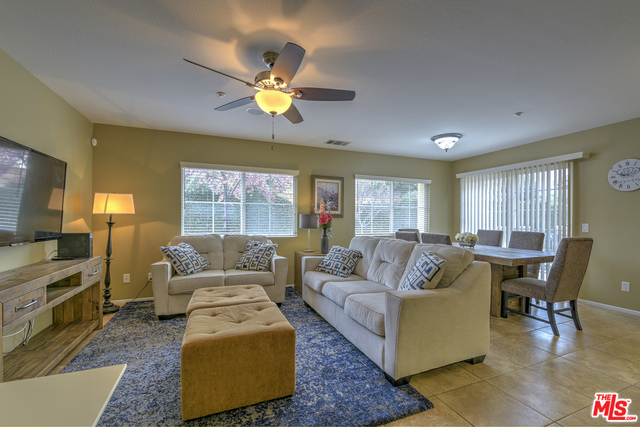 Wonderful, updated and move-in ready. Welcome to your TURNKEY new home! Open, inviting floor-plan seamlessly blends kitchen with entertaining space affording plenty of room for friends and family to gather. Impressive great-room opens via. sliding glass door to the front patio for indoor/outdoor flow. Common area tile flooring is cool in the summer, clean and easy to maintain. Kitchen boasts stainless steel appliances, granite counter tops and convenient pantry. Down the hall is a guest bedroom and full bath. Spacious en-suite master bedroom with walk-in closet and additional bedroom with guest bathroom located upstairs. All bedrooms have ceiling fans with natural light exposure. Direct access garage. Corner unit --only one shared wall! Close proximity to visitor parking. Gate and secured property access with night patrol. Complex located near to shopping, schools, parks and public transportation. This one has it all....WELCOME HOME!