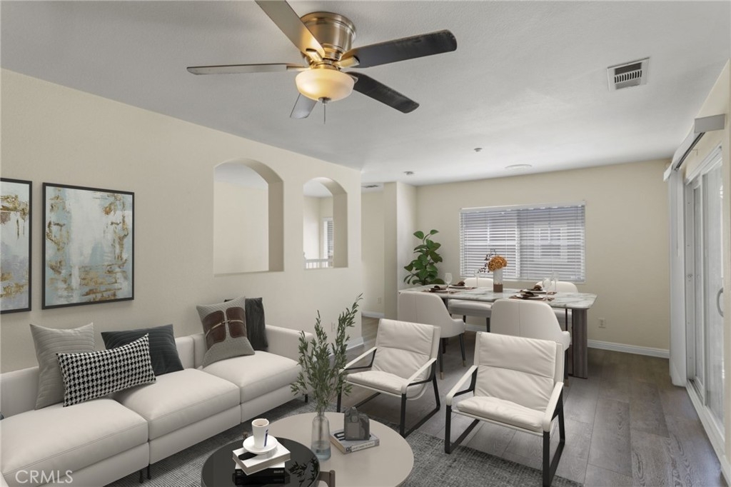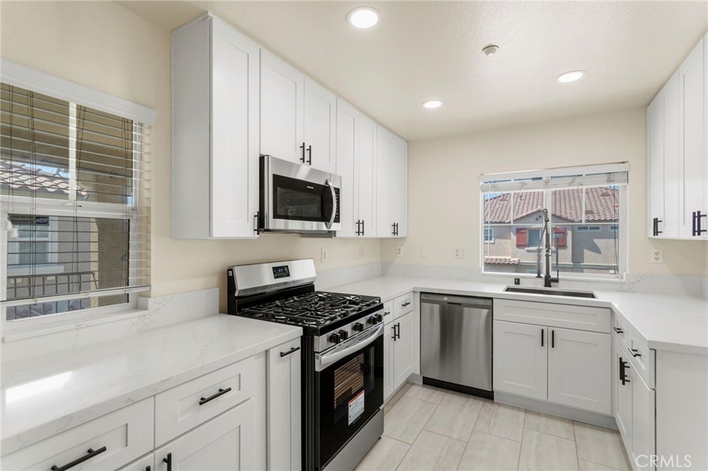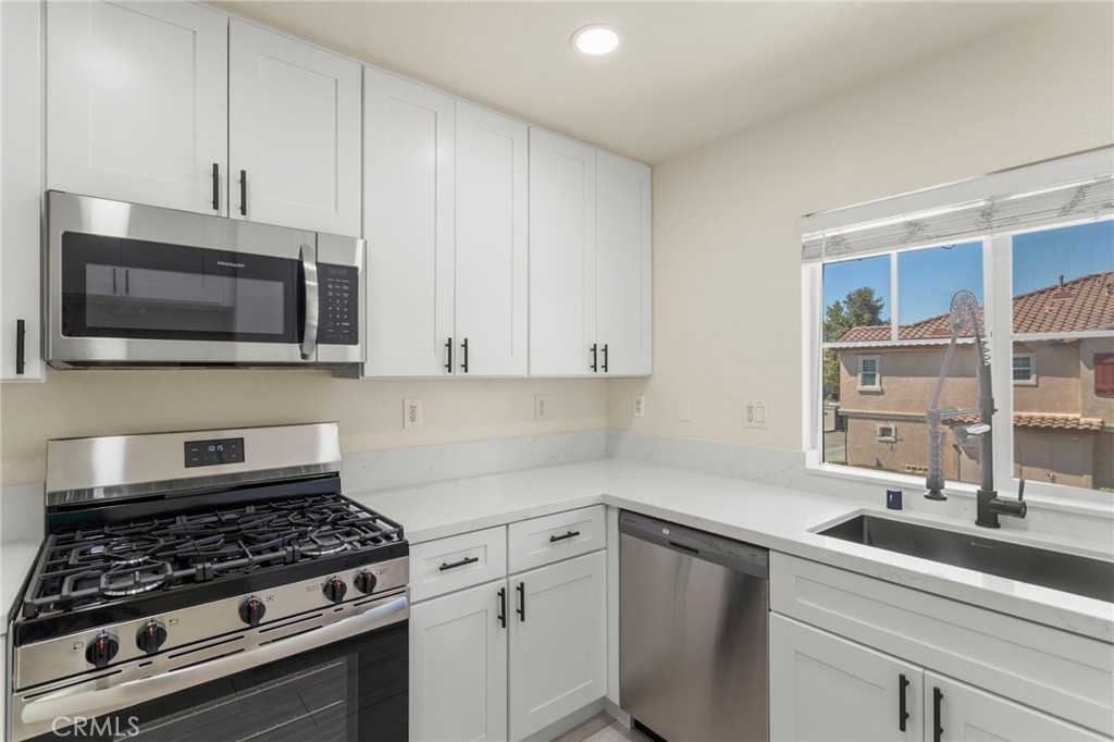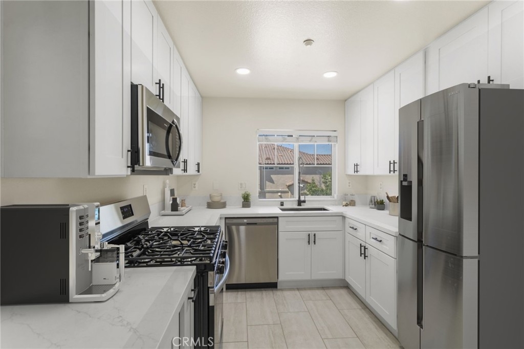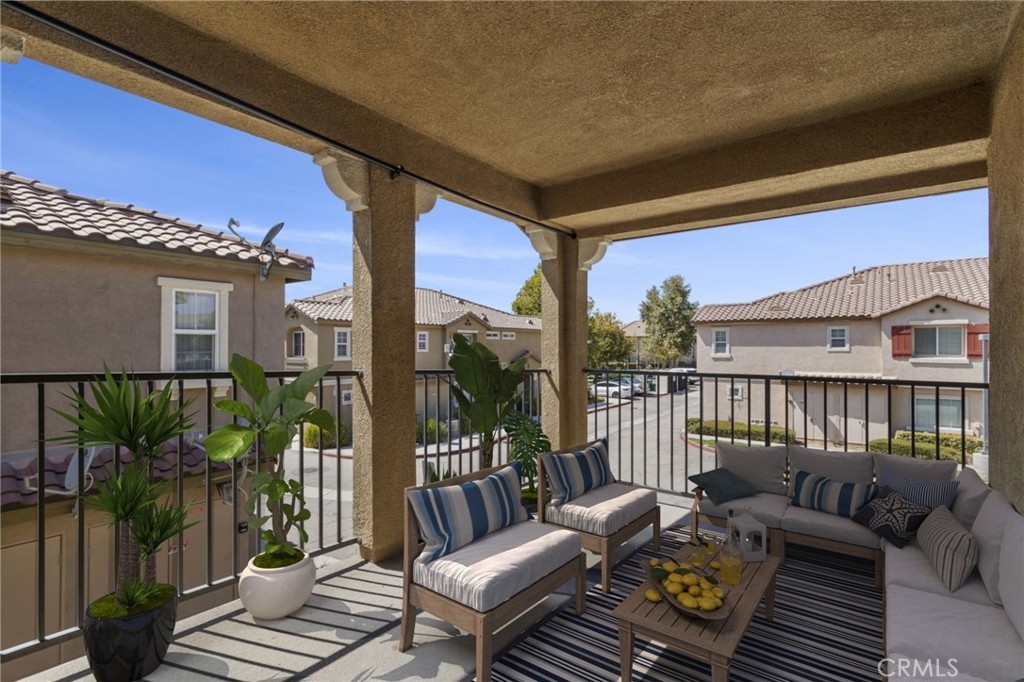 Step into this stunning 2-story condo nestled in the highly sought-after gated community of Palacio de Oro. This charming condo boasts a spacious living room that seamlessly flows into a bright, inviting REMODELED kitchen. With ample cabinet storage and a window that fills the space with natural light, the kitchen is perfect for cooking your desire meals. The bedrooms are designed for comfort, each featuring its own closet, NEW plush carpeting, and windows that bring in the sunshine. The master bedroom has their own private bathroom. Convenience is key with an in-unit washer and dryer, and you'll love unwinding on your beautiful balcony with a view of the serene community. The condo also includes a one-car attached garage, making parking a breeze. Palacio de Oro offers fantastic amenities, including beautiful picnic areas with BBQ grills, courtesy security patrol, all maintained by the HOA, which also covers trash, walls-out insurance, and landscaping. Enjoy a low-maintenance lifestyle while benefiting from the surrounding perks! Ideally located at only 14 miles from UCR and at walking distance to restaurants, supermarkets, schools, and other convenience shopping centers. The 215 and 60 freeways are at only minutes away from this beautiful place. And for the outdoor lovers, lake Perris is just a few minutes away filled with hiking trails and camping sites for those peaceful breaks. Welcome Home!