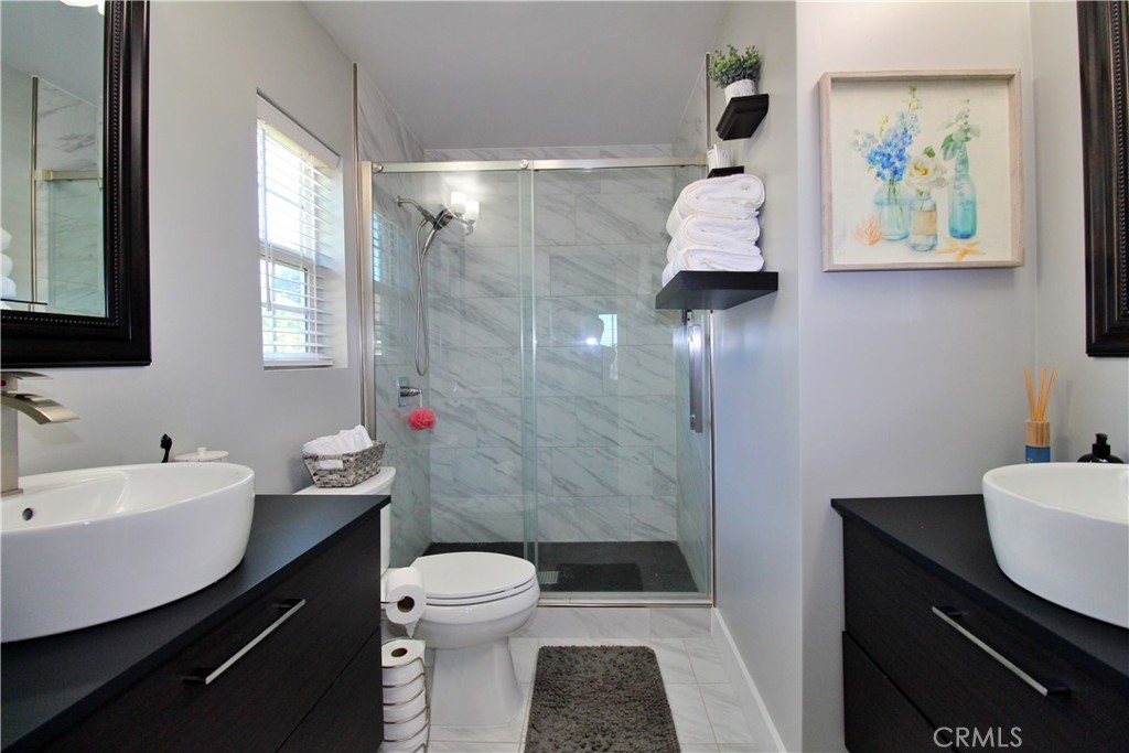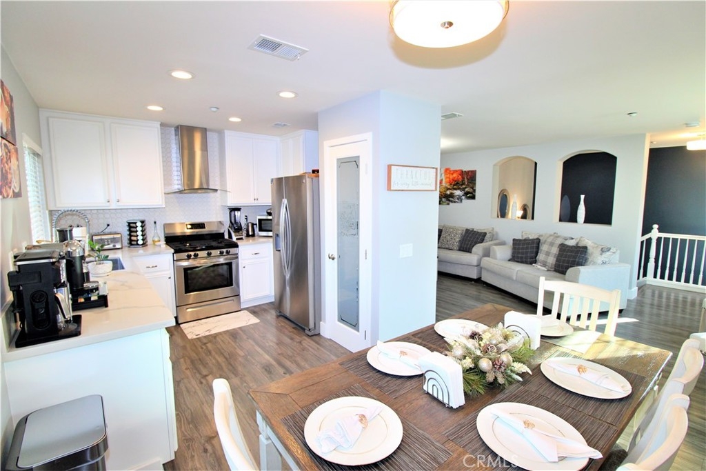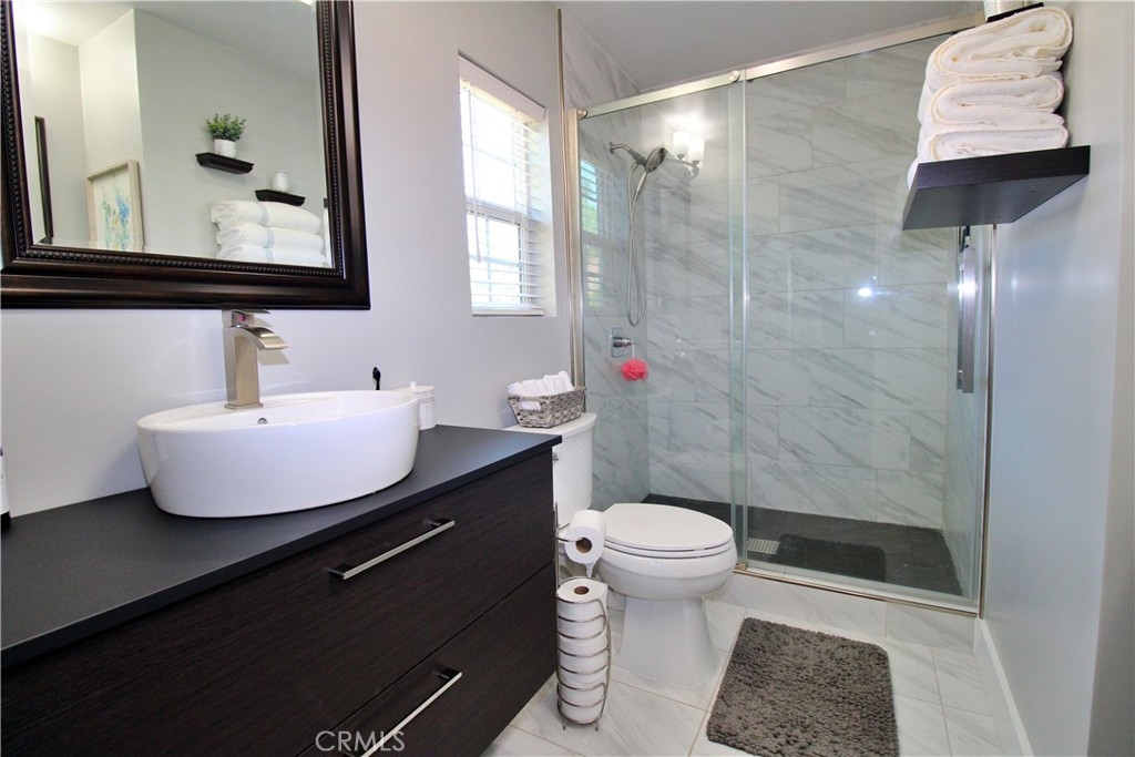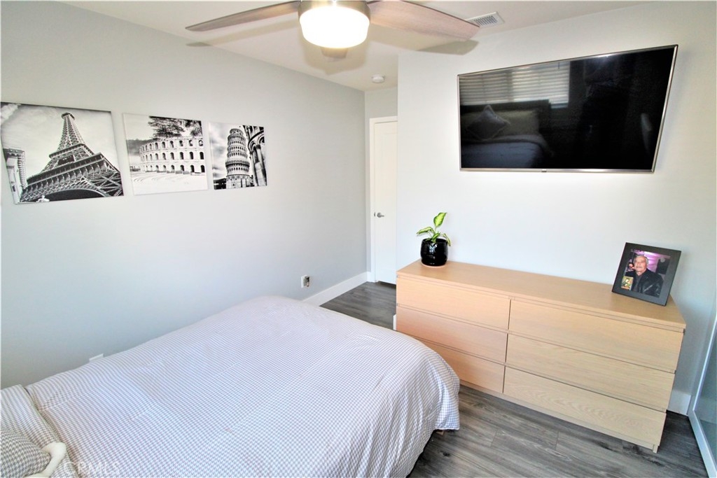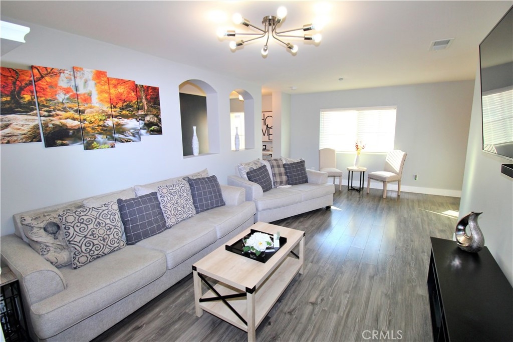 Welcome to the beautiful city of Moreno Valley! END-UNIT CONDOMINIUM! This turnkey, 2 bedroom 2 bath condominium has been completely remodeled throughout with a modern look. High ceilings welcome you as you enter through the front door. The first floor gives you private access to the garage. This condo has been updated with laminate wood flooring and skim coated walls throughout. The kitchen includes stunning quartz countertops, tiled backsplash, new stainless steel appliances, walk-in pantry, and wine cooler. Each room has been updated with new recessed lighting and ceiling fans. Both restrooms include newly installed toilets and vanities. The master bathroom shares his and hers vanities with gorgeously remodeled walk-in shower and sliding restroom door. The front entrance gives access to a private patio, perfect for hosting guests or enjoying a glass of wine at the end of the day. The HOA provides private access to Moreno Valley Ranch. This includes access to Lily Lake, a 35-acre lake, large community pool, fitness centers, large recreation center, and both private and public parks. Located in the hills of Moreno Valley, close to shopping centers, freeway access, and just 10 minutes from Perris Lake, this home is truly a gem. Please be sure to check out our video tour!