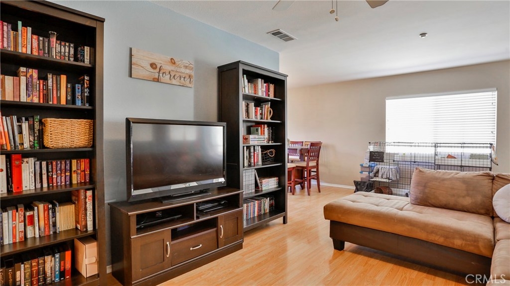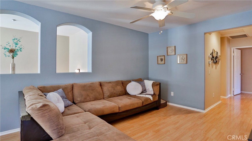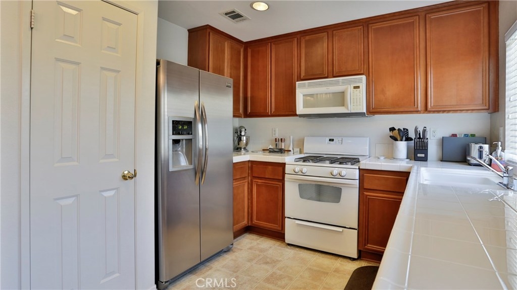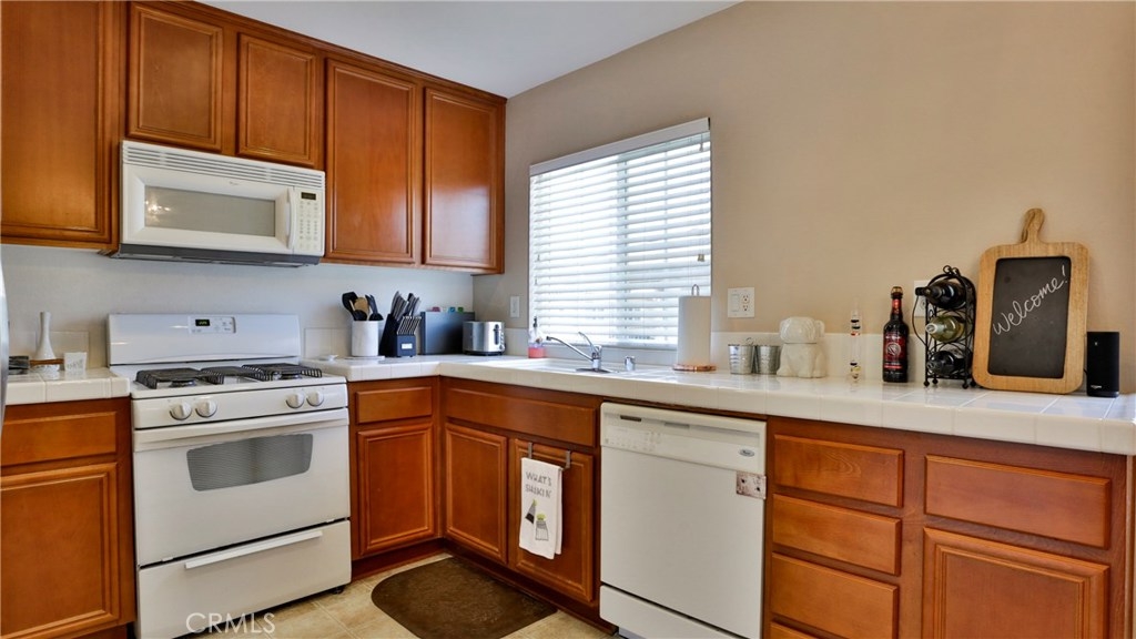 Check out this beautiful, gated, turn-key 2 bedroom/2 bath condo in the highly desirable community of Palacio De Oro South! Perfect for first time buyers, downsizing, or rental investment. Walking distance to Moreno Valley College, and short drive to University of California, Riverside (UCR), Lake Perris State Recreation Area, March Air Force Reserve, and other employers. This top and end walkup unit is very quiet with an attached single garage. Up a flight of stairs from the garage, and all living areas are on one level, making this condo an easy place to live. Kitchen features natural gas appliances, and there are gas laundry hookups in the condo itself. Large eating area and living room, and oversized master en-suite bathroom make this condo feel incredibly spacious. Neighborhood amenities include access to the guard-gated Moreno Valley Lake across the street. This beautiful lake park includes exclusive access to the lake, fishing, paddle boats, playground, pool/spa, club house, picnic and BBQ area, and clubhouse that can be reserved for your private functions. In addition, this condo is walking distance to an elementary school, grocery shopping, restaurants, and pharmacy.