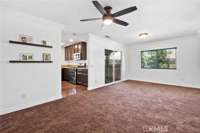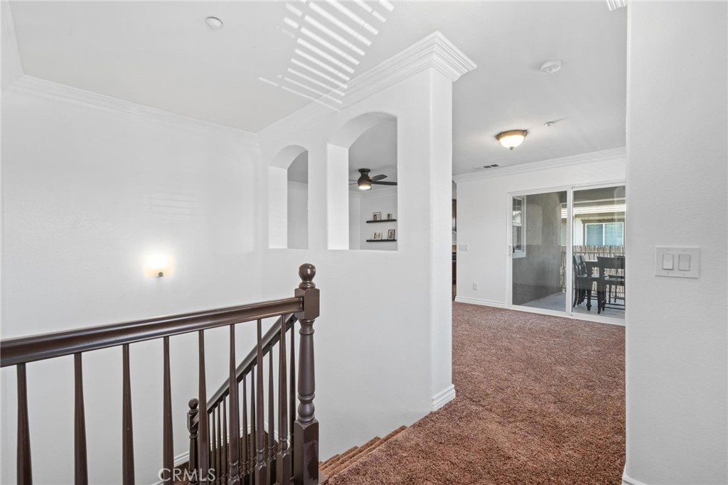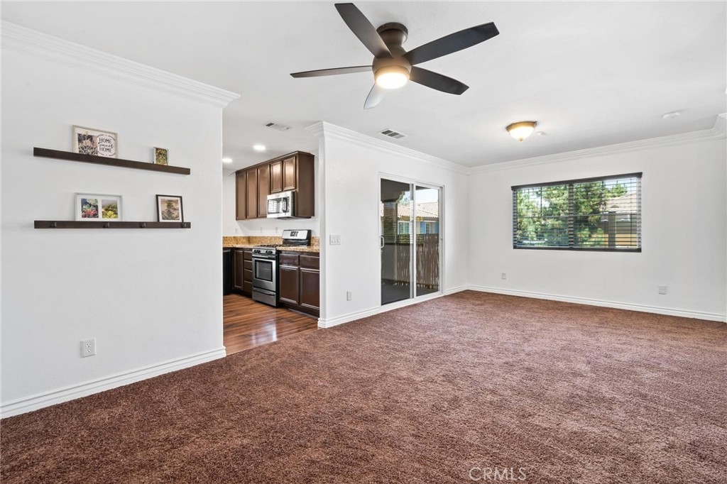 Stunning turnkey condo in the highly desired Palacio De Oro South community in Moreno Valley! This condo is nearby restaurants, shopping, schools, parks and entertainment. Brand new carpet throughout, New flooring in bathrooms, New microwave, Crown molding and fresh pain throughout! As you make it to the 2nd floor you are greeted by the family room boasting plush carpet and a ceiling fan installed. You have direct access to the 2nd floor balcony, the perfect place to enjoy your morning coffee. The open living room is perfect for entertaining family and friends. The kitchen has plenty of cabinet space, pantry, granite countertops and recessed lighting. The master bedroom showcases a large walk-in closet, dual vanities and custom barn doors. Attached garage that has been freshly painted and located on the END UNIT! Enjoy all the amenities of the community such as tennis courts, pool, spa, volleyball courts and lake. Do not hesitate this one will not last, schedule your showing today!