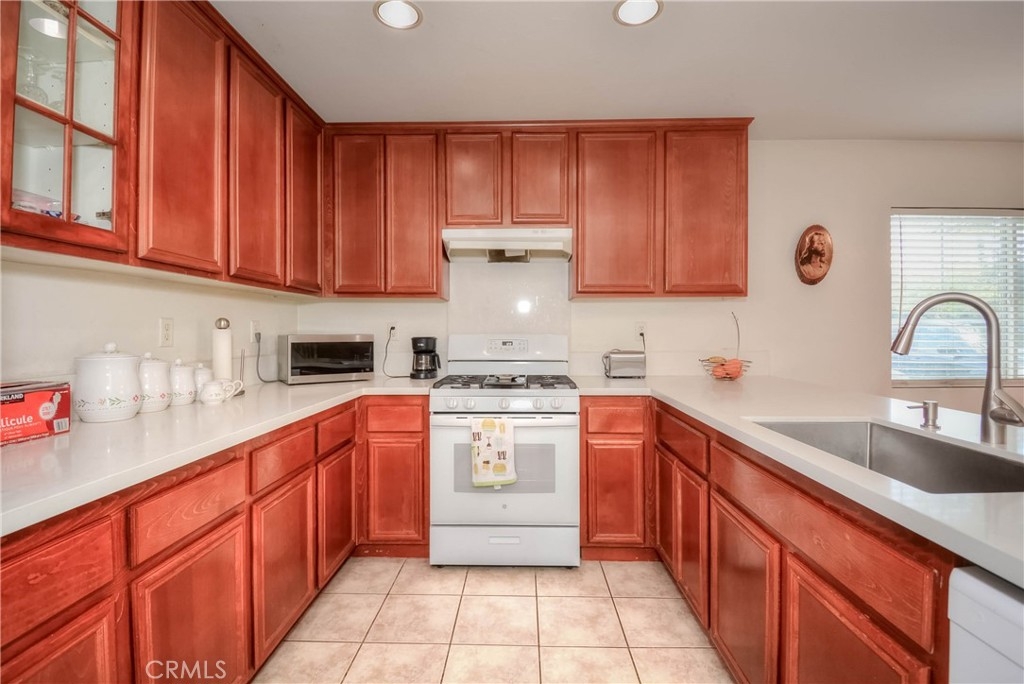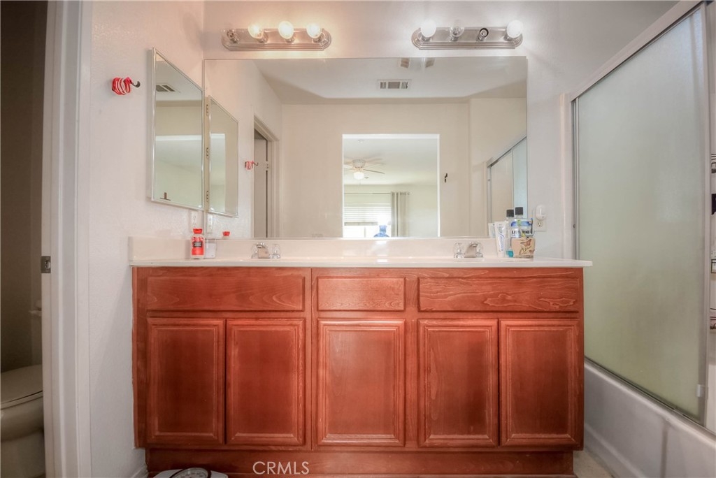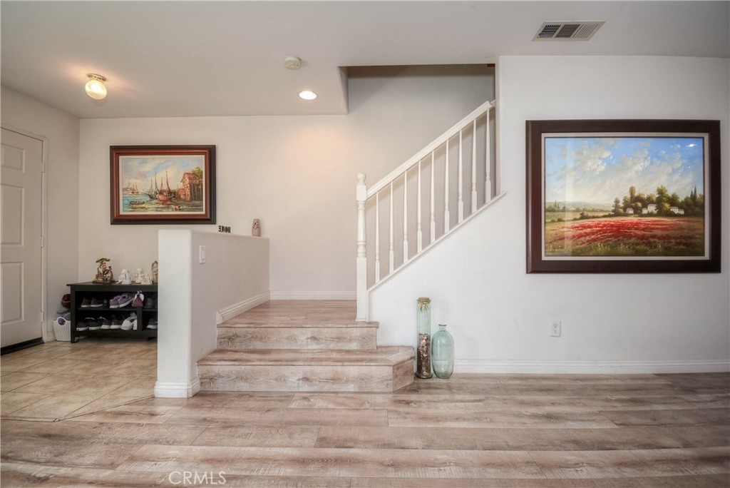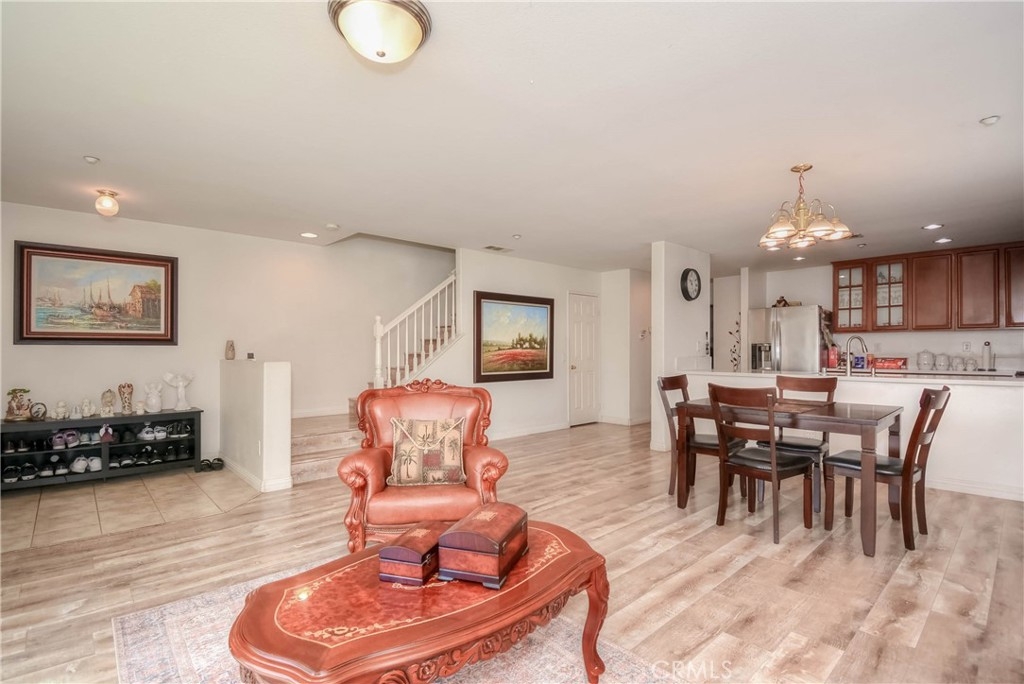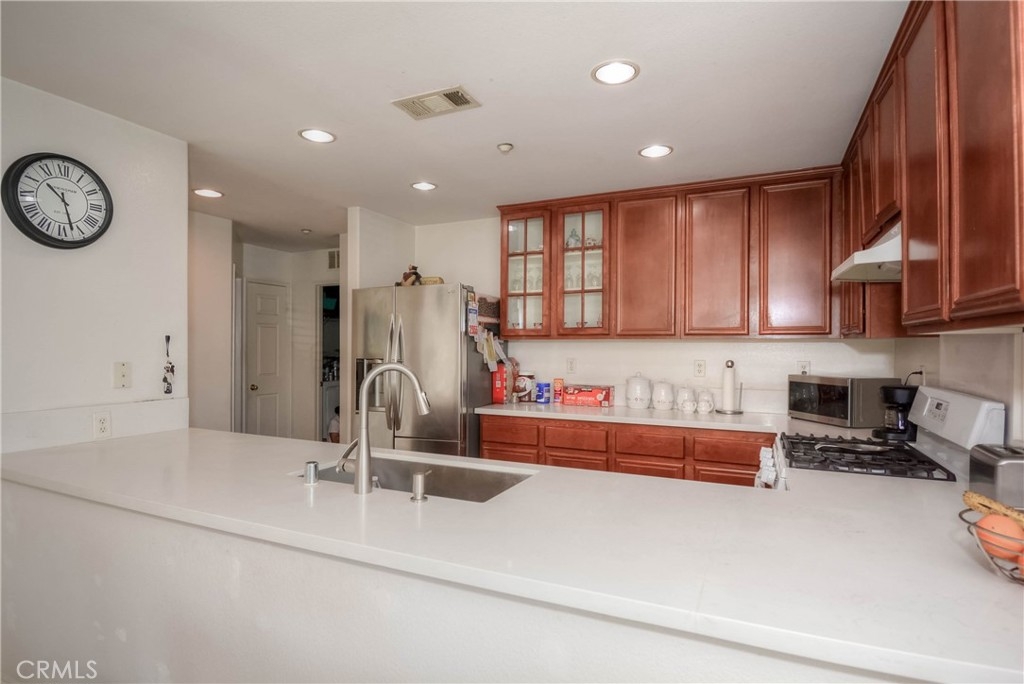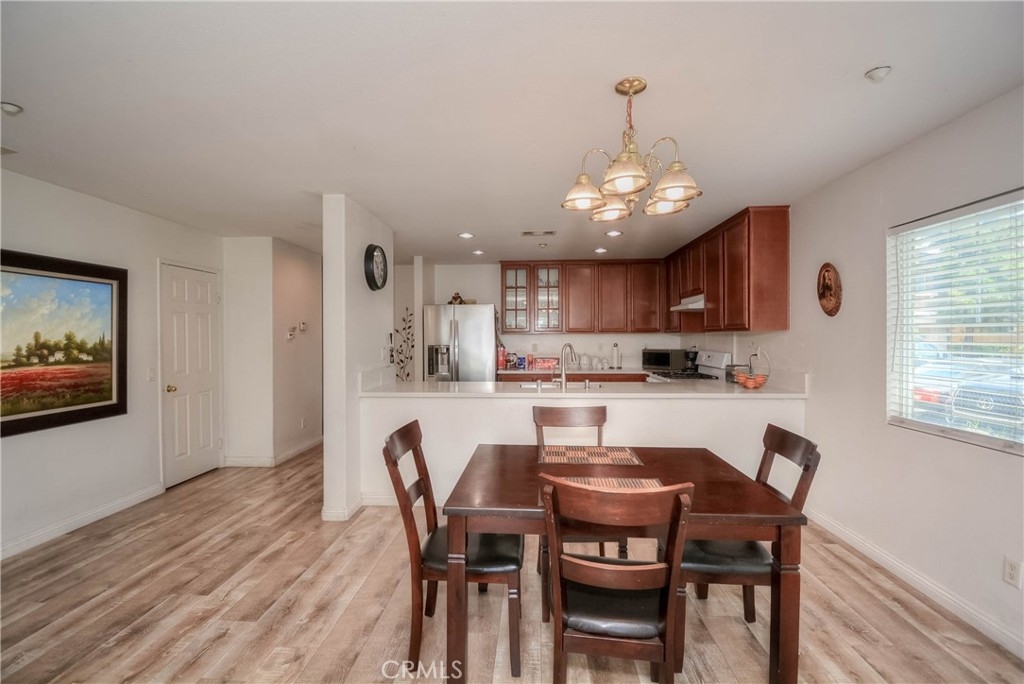 A Must-See Gem! This adorable 2-bedroom, 2.5-bathroom condo is perfectly situated in the heart of Moreno Valley. Inside, you'll find a spacious living room and a chef's kitchen adorned with stunning, newly updated white quartz countertops, sleek white appliances, and a stylish stainless steel farmhouse sink with a modern faucet. The entire home features elegant wood laminate flooring and ceiling fans in every room for comfort. The primary suite boasts a bright and airy bedroom, a walk-in closet, and a luxurious bathroom with dual sinks, perfect for convenience and style. Upstairs, there’s a generously sized second bedroom and a full bathroom, while the main level offers a convenient laundry room and powder room right next to the kitchen. An oversized attached garage provides ample storage, and additional parking is available with a HOA permit. This charming condo is nestled in the popular and secure gated community of Palacio De Oro South. You can enjoy the incredible amenities offered by the Moreno Valley Ranch including access to a clubhouse, park, pool, BBQ area, playground, and even a private lake with fishing, paddle boats, and delightful ducks!