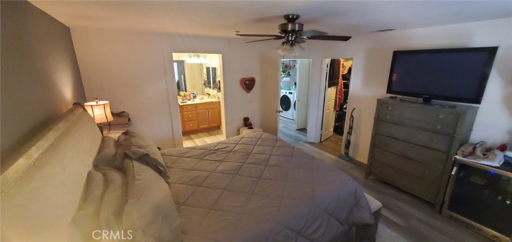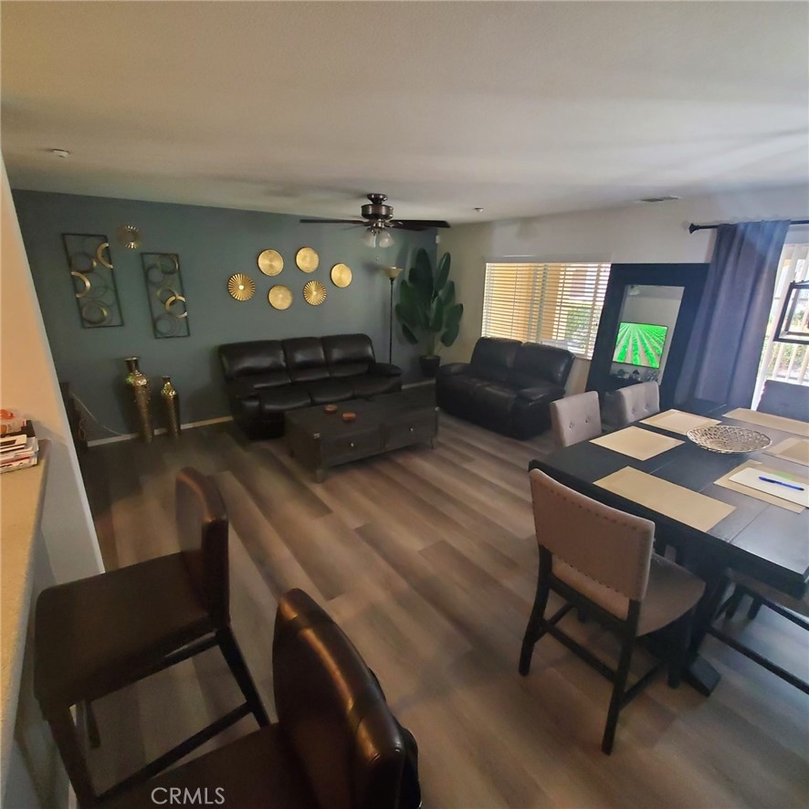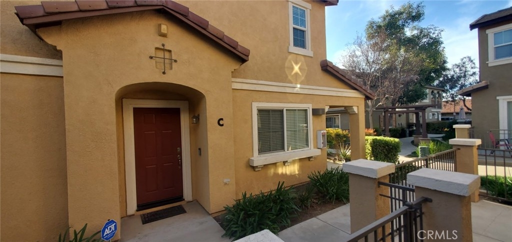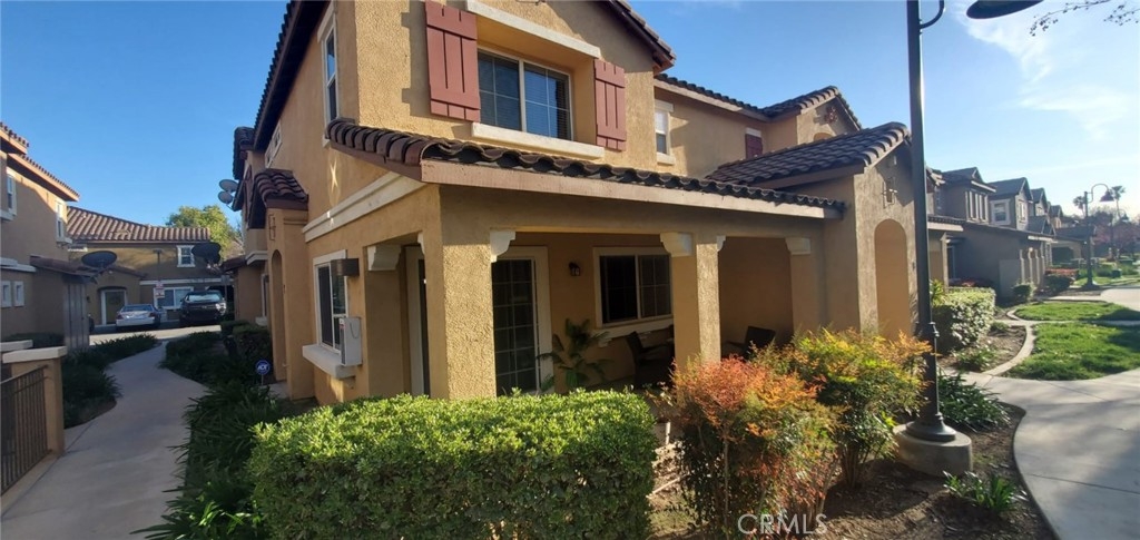 Absolutely A Must See! Beautifully maintained and move-in ready. Gated community of "Palacio De Oro". This home features 3 bedrooms, 3 full baths, with one bedroom and one bath located on the 1st level. The spacious Master bedroom has a large bathroom with double sinks, tub/shower combo, separate toilet, walk-in closet which has upgraded shelving and storage, on the 2nd level as well as the 3rd bedroom and bath. The home has upgraded New laminate flooring in the dining and living areas throughout the entire home including stairs. New paint, Water Heater and Belt drive Garage Door opener. No expense spared. Window coverings are faux wood and vertical blinds. The kitchen features, Corian counter tops and available 3 barstool seating at the counter, microwave, stove and dishwasher. Additionally included are the refrigerator and washer and dryer, located on the 2nd level. The home is located within a short distance to shops and restaurants. There are also shared amenities with Moreno Valley Ranch (club house, park, pool and others). You won't want to miss this gem!