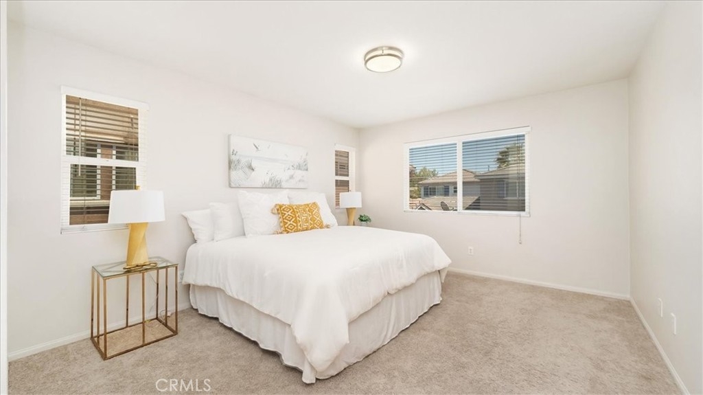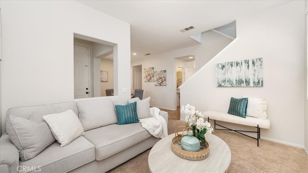 Welcome to this exceptional 3-bedroom, 2.5-bath home for sale in a well maintained private community. With a spacious and inviting living space, this property is perfect for comfortable family living and entertaining guests. The main floor features an open and flowing layout, connecting a bright living room with a dining area, creating an ideal space for relaxation and social gatherings. The well-appointed kitchen allows for convenient meal preparation. All 3 bedrooms are located on the second floor including the laundry room. The main bedroom has its own spacious bathroom with double sinks, a large shower, soaking tub and walking-in closet. The secondary bedrooms share a full bathroom. Outside, the spacious concrete backyard provides a great setting for outdoor activities and entertaining. The detached two-car garage offers ample parking and storage, with easy access through the sliding door from the kitchen or the main front entrance. This property is located near schools, a vibrant community park, and various shopping options. With easy access to the 60 and 215 Freeways, commuting to San Diego, Los Angeles, or Palm Springs is a breeze. Don't miss out on this exceptional opportunity that combines comfort, style, and a convenient location. Schedule your viewing today to experience the lifestyle this home offers.