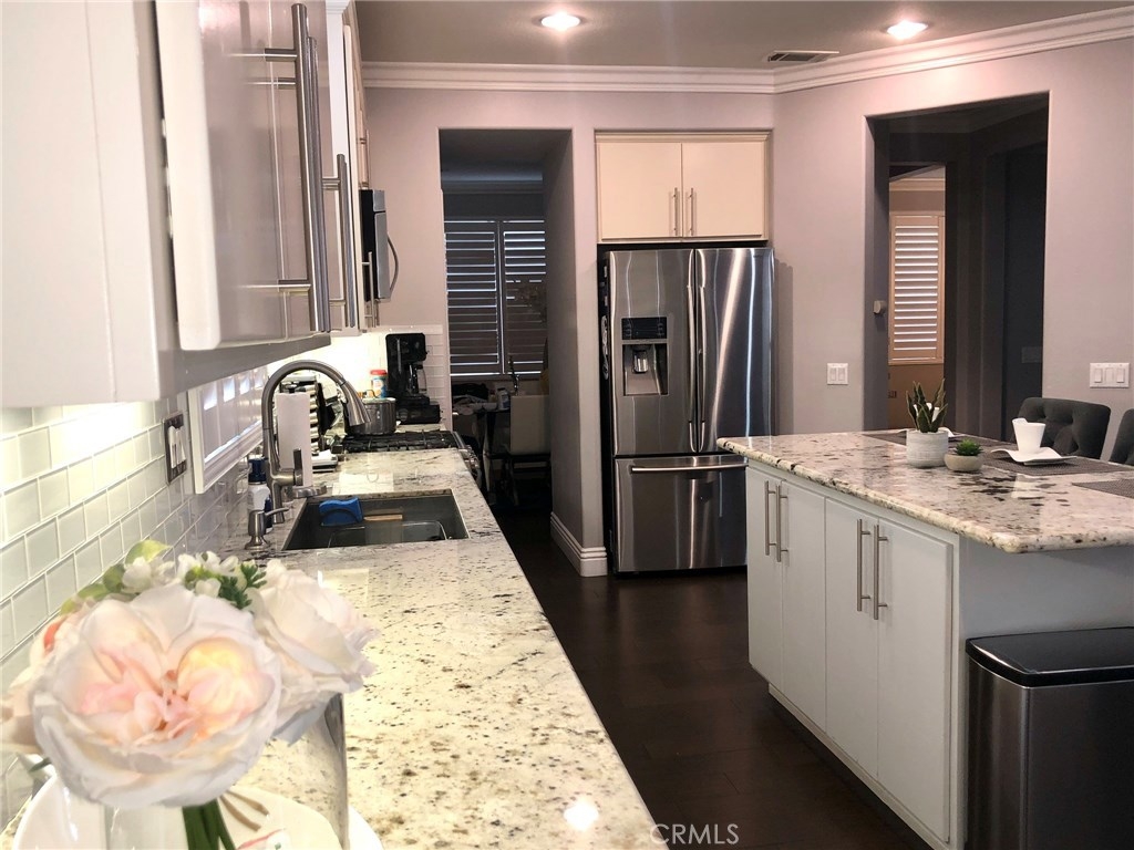 Back on the Market as Buyer Could Not Perform!!!! BEAUTIFUL Two Story Town Home with Luxurious Upgrades & Amazing Location! Remodeled Kitchen with Granite Countertops & Big Island, Stainless Steel Appliances, Highly Desirable Barn Style Sink with New Kitchen Faucet, Recess Lighting, New USB Kitchen Outlets, Impressive Fireplace, Luxury Shutters, Crown Moldings, Ideal Ceiling Fans, Baseboards all Around the House, Brand New Vanity Sink and Water Efficiency Toilet Downstairs, Splendid Tile Flooring on First Floor, New Tile and Toilets on Upstairs Restrooms, New Faucets in all Restrooms, Wood Trims on Doors, Laundry Cabinets and Wall Panels in Laundry Room, New Light Fixtures and Fresh Paint in Garage, Outside Storage Shed..and many More Upgrades. Its Gorgeous!! All of this with a Fun Playground by the Main Entrance, Including Tables for Seating & Patio. Location is Really Awesome Here. Its Near Shopping Mall, Schools, Grocery Stores, Freeways, City Park, Restaurants, Gas Stations and Hotels to Mention a few. University of California Riverside is only a few Miles Away also. This Home is Truly Beautiful, Its a Must See!!! Subject to Escrow Cancellation.