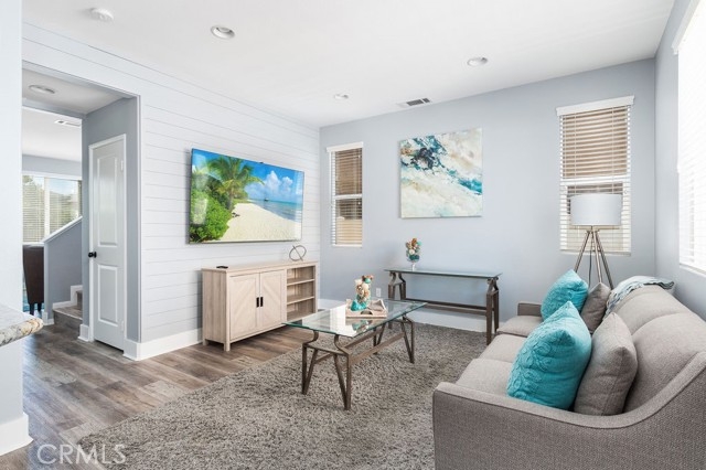 Welcome home to Parkside at Towngate! This is a fabulous 3 bedroom, 2.5 bath DETACHED townhome that is updated with luxury vinyl plank flooring, fresh paint, upgraded baseboards & a Nest smart thermostat. This home has some great added touches, such as shiplap in the family room, on the backside of the kitchen peninsula, and a faux brick facade in the dining room. The formal living room has a cozy gas fireplace with a beautiful mantle. The kitchen has granite countertops, a subway tile backsplash, recessed lighting, and a sink in the peninsula. Above the 2-car detached garage is a huge bonus room with its own HVAC system! This space could be utilized as an office, workout room, storage, or an extra large bedroom. Whatever suits your needs! The backyard is spacious and has vinyl fencing. Close to the 215 & the 60 freeways, the mall & local schools and a low HOA!