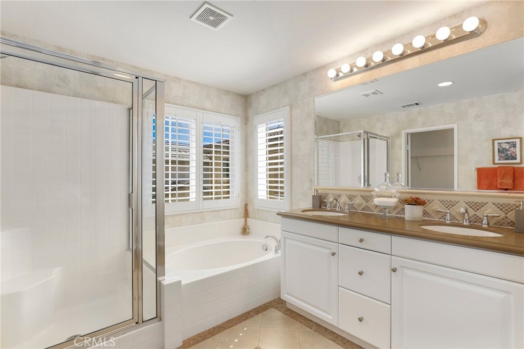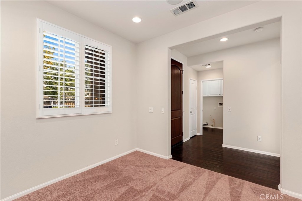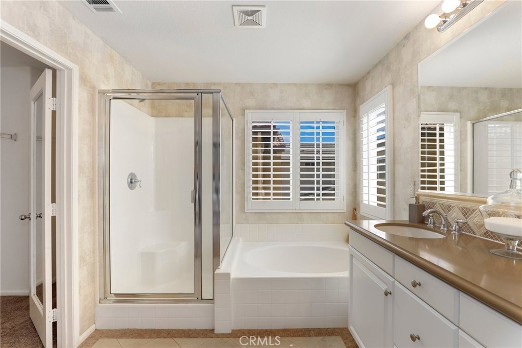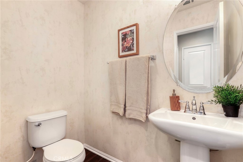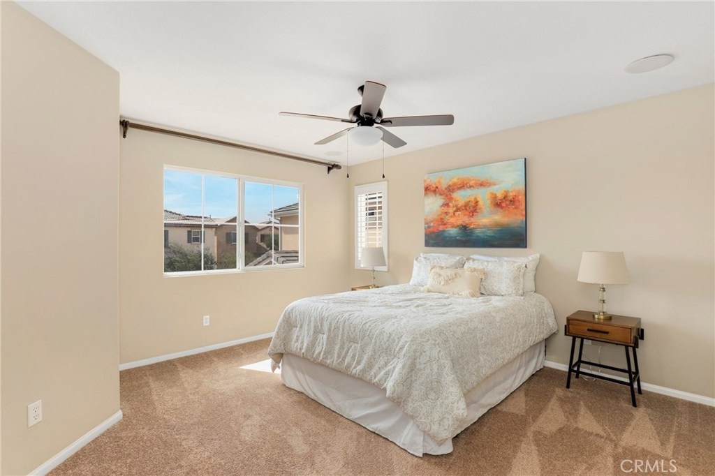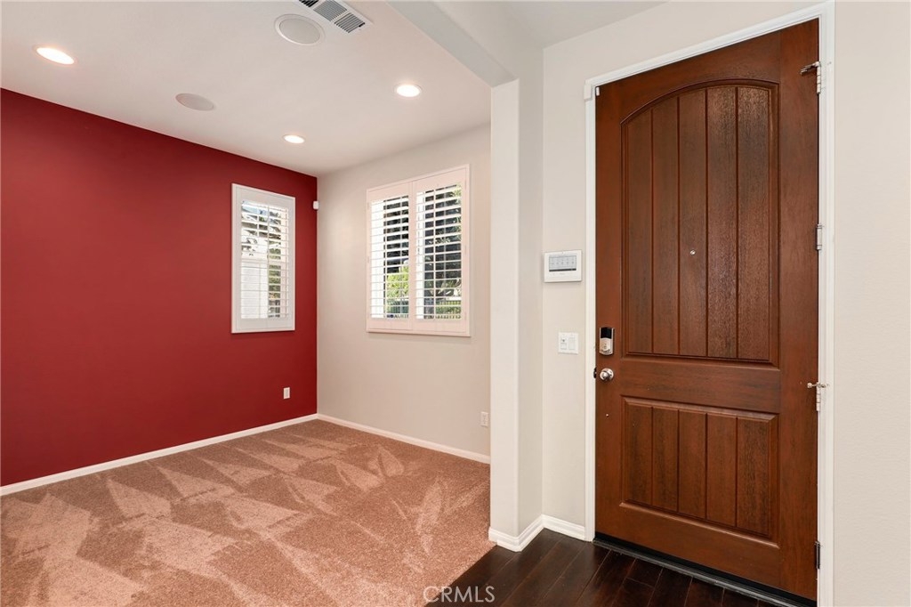 This meticulously maintained two-story condo features gorgeous hardwood floors, new carpeting, plantation shutters, and upgrades throughout. The main floor offers a classy living room/den, dining area off of the kitchen, an inviting family room w/fireplace, and a laundry room. The kitchen features an island, Caesarstone countertops, stainless steel appliances, white cabinets, designer backsplash, and windows & slider looking out to the back patio. Upstairs, the spacious master suite has a spa-like bathroom w/ double sinks, large shower, soaking tub, and walk-in closet. The secondary bedrooms share a full bath. Additional features include a two-car garage. Relax in the backyard w/ built-in BBQ island. Residents of Towngate Park enjoy rear-facing garages that allow for a meandering walking trail throughout the grounds. Schools, parks, shopping, dining, and entertainment are all nearby.