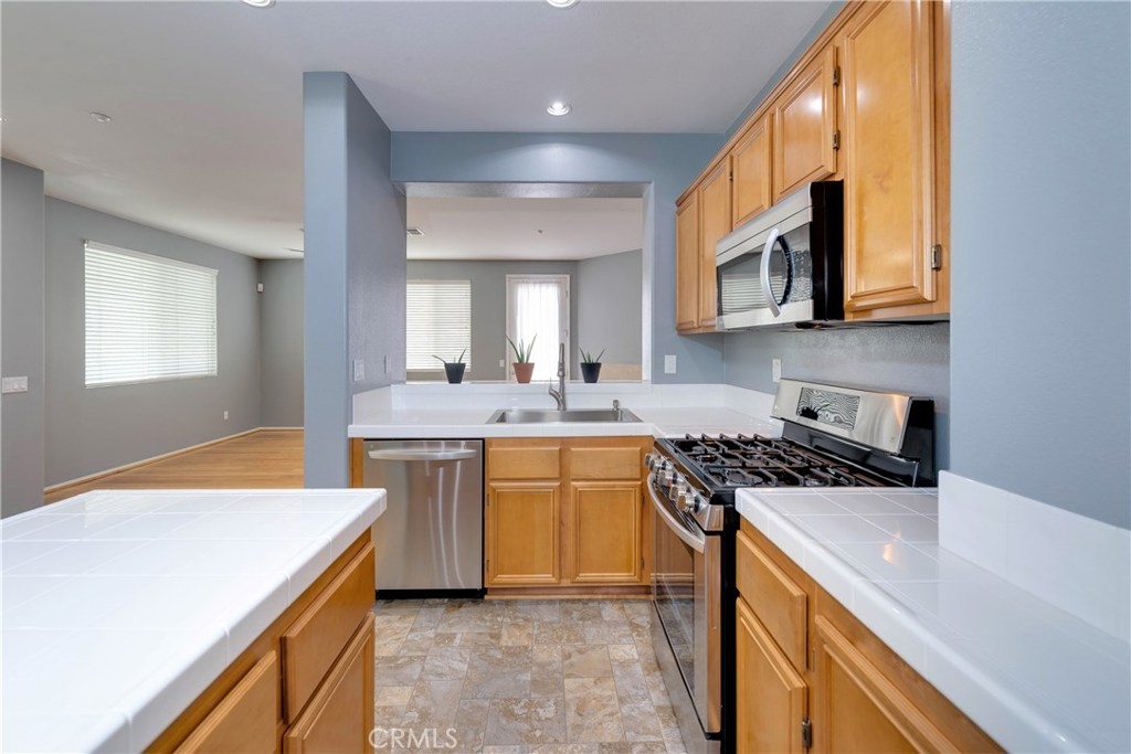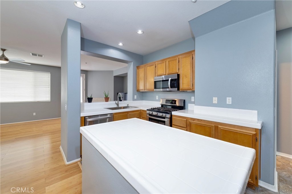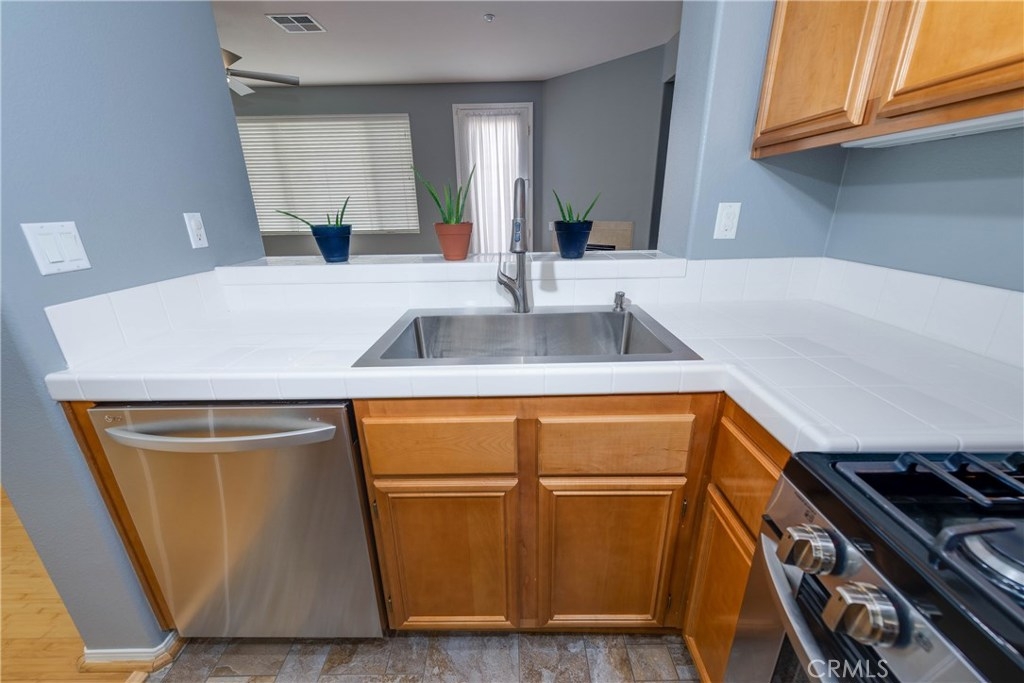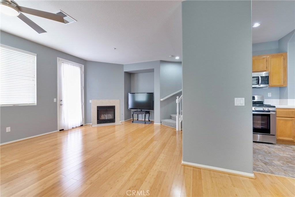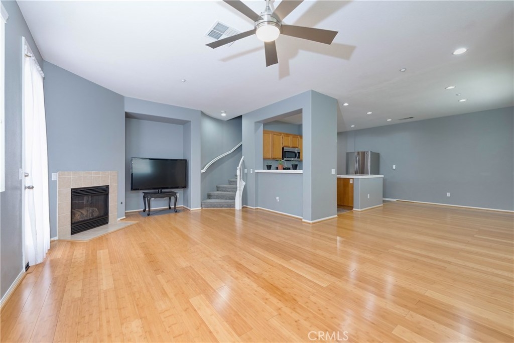 Turnkey & Upgraded Condo in Promontory Pointe Community home boast 3 bedrooms and 2 ½ baths 1486 sq.ft. 2 car attached garage with direct access to your home. This is wonderful well kept condo with Bamboo flooring in living room & formal dining area, upgraded vinyl flooring in Kitchen, pantry and downstairs bathroom. LG models appliances included with new stainless steel dishwasher, microwave, range and refrigerator. LED lighting throughout the condo and ceilings fans in Master bedroom and living room. Kitchen comes with an abundance of cabinets and counter top space and new top mount stainless steel sink. Master bedroom spacious includes custom walk-in closet and en-suite bath double sink basins and garden tub. Upstairs laundry room boast overhead cabinets for supplies include LG washer and dryer. Backyard space is perfect for entertaining family and friends with lots of space for seating and lounging. Great amenities with this very maintained complex, including Community Pool & Spa with large hosting areas and walking trails. This desirable community is just minutes away from all sorts of great adventures. Minutes from beautiful parks, walking distance from Moreno Valley Golf Course, close to Kaiser & Regional Hospitals, shopping and the stunning Lake Perris. This is a must see beautifully maintained condo in a very desirable area.