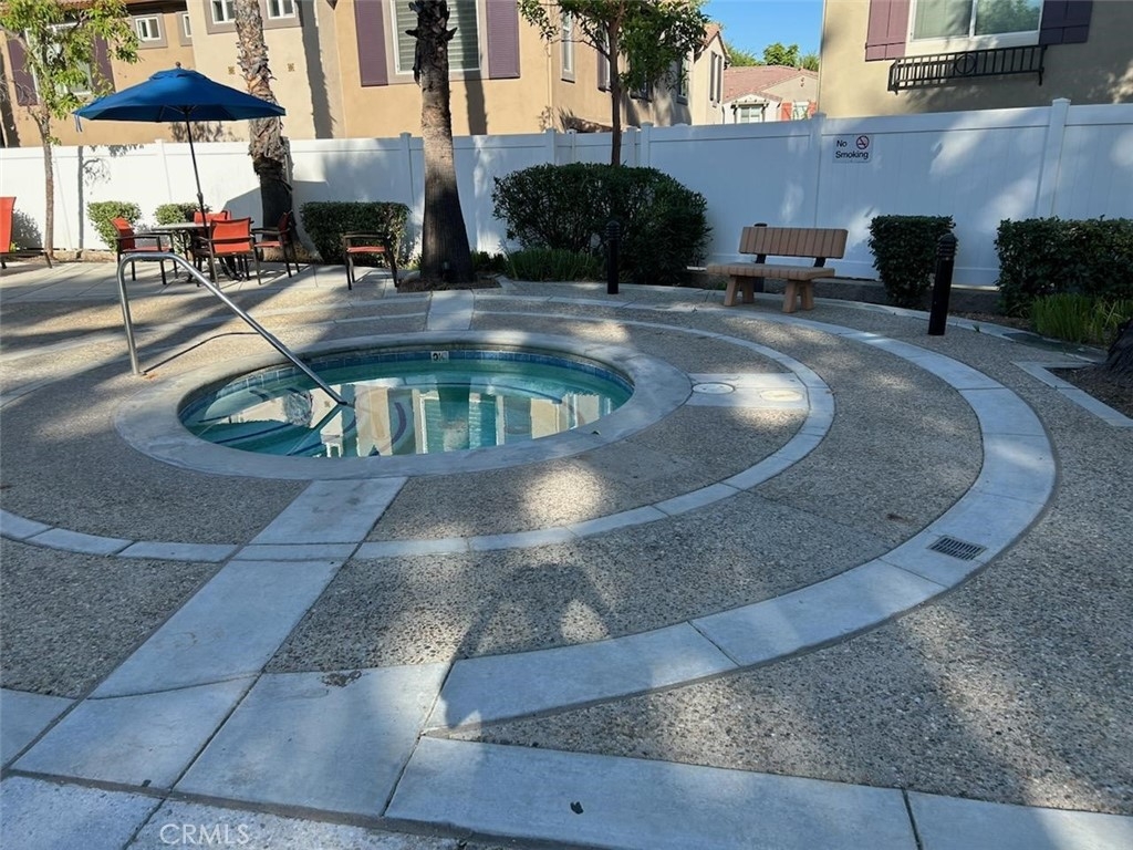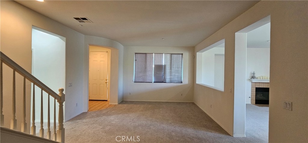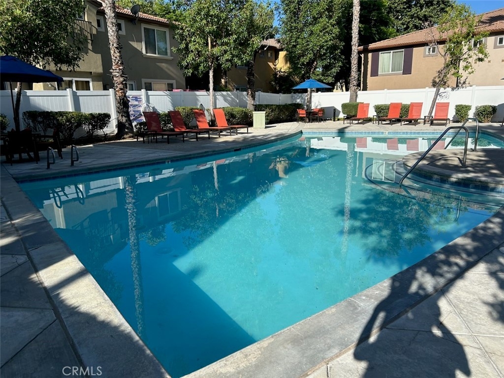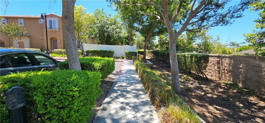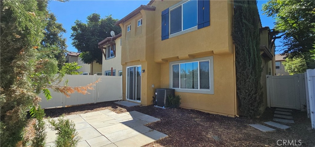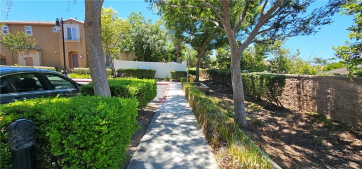 One of the most sought after unit in Promontory Pointe. Make this corner lot, private, and turn key condo your home sweet home. Onwer spared no expenses. NEW paint outside, NEW paint inside, NEW carpet, and NEW AC unit. Exterior front entrance is nicely landscaped by the HOA with a garden, matured trees, and private walkways. Step inside the front door of the first floor is a charming foyer leading to a large living, a laundry room, and a half bath. Separated by a large open wall concept is a family room with a fire place. Adjacent is a kitchen with a counter island and a little breakfast nook overlooking the backyard through the sliding door. Backyard is private, large, and has wrought iron fencing to the back with no neighbors behind. All bedrooms are upstairs. Primary bedroom is large with windows completed with a double sink vanity, a glass shower door and a walk in closet. Other two secondary bedrooms have amber closet space and window. 2 attached car garage. Community has pool and spa. Close to freeway, shopping center, car dealers, and restaurants. Perris Resevoir for lake and fishing activities is only a few minutes away.
