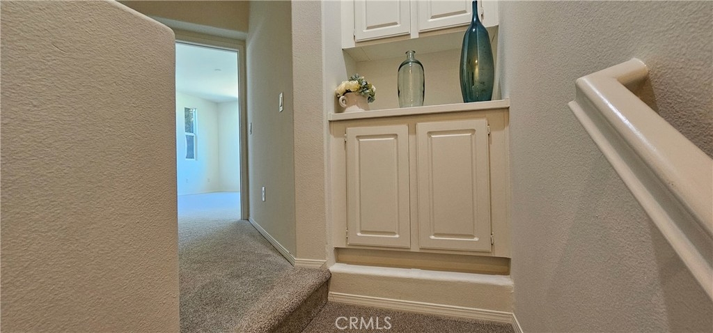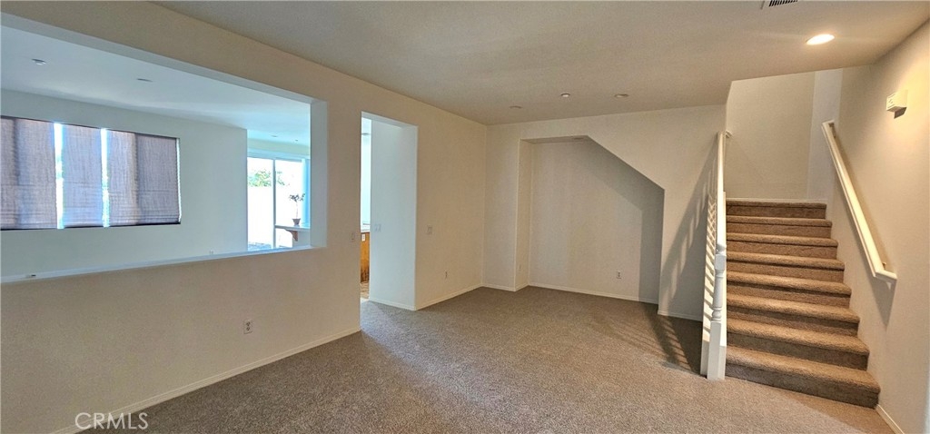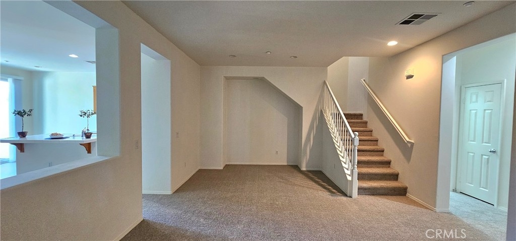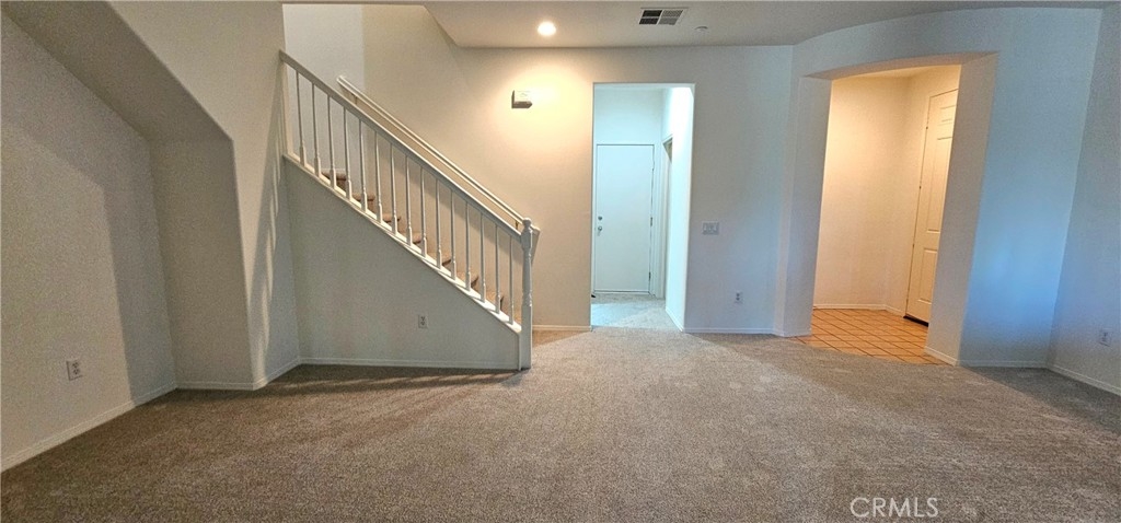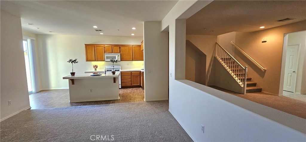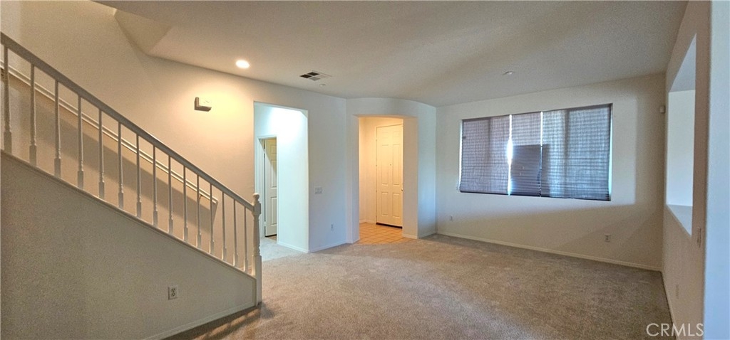 One of the most sought after unit in Promontory Pointe. Make this corner lot, private, and turn key condo your home sweet home. Onwer spared no expenses. NEW paint outside, NEW paint inside, NEW carpet, and NEW AC unit. Exterior front entrance is nicely landscaped by the HOA with a garden, matured trees, and private walkways. Step inside the front door of the first floor is a charming foyer leading to a large living, a laundry room, and a half bath. Separated by a large open wall concept is a family room with a fire place. Adjacent is a kitchen with a counter island and a little breakfast nook overlooking the backyard through the sliding door. Backyard is private, large, and has wrought iron fencing to the back with no neighbors behind. All bedrooms are upstairs. Primary bedroom is large with windows completed with a double sink vanity, a glass shower door and a walk in closet. Other two secondary bedrooms have amber closet space and window. 2 attached car garage. Community has pool and spa. Close to freeway, shopping center, car dealers, and restaurants. Perris Resevoir for lake and fishing activities is only a few minutes away.