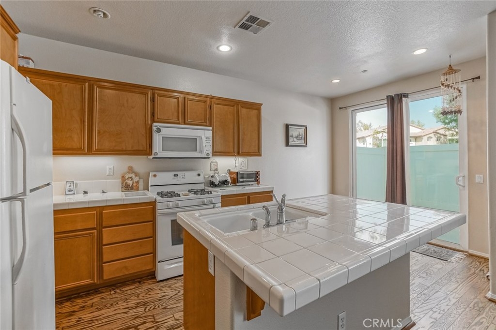 Come see this well maintained condo in the highly wanted community of Promontory Pointe. Offering 3 Bedrooms and 2.5 Bathrooms in a 1781 Sqft layout. The Oversized Master Suite features a Walk-in closet and private bathroom. A cozy family room of the kitchen with a gas fireplace and refinished hardwood floors makes for a nice place to sit with your family on a cold evening. There is an oversized patio off the kitchen area that wraps around the size of the building. There is a 2 Attached Car Garage with Direct Access for convince as well as Inside Laundry area. The Kitchen features an Island, Recessed Lights, and a private backyard patio for entertaining. The community features a refinished Pool & Spa with Spacious Lounging Area. Local amenities also include Golf Courses and proximity to Lake Perris.