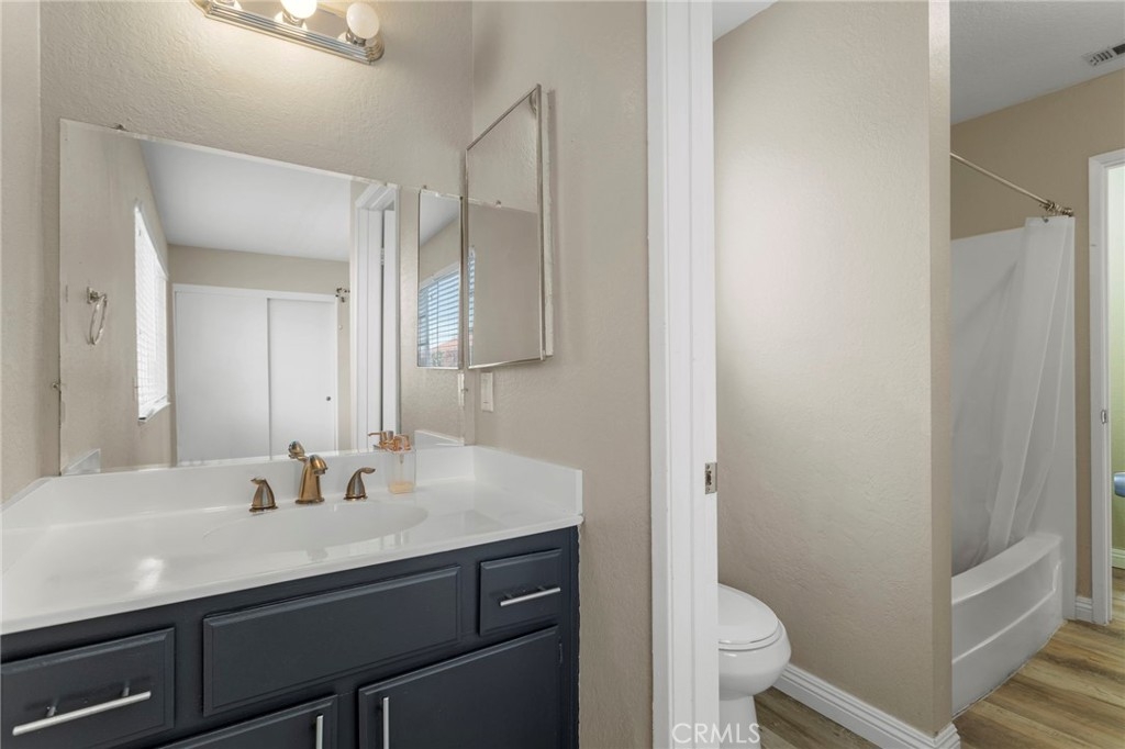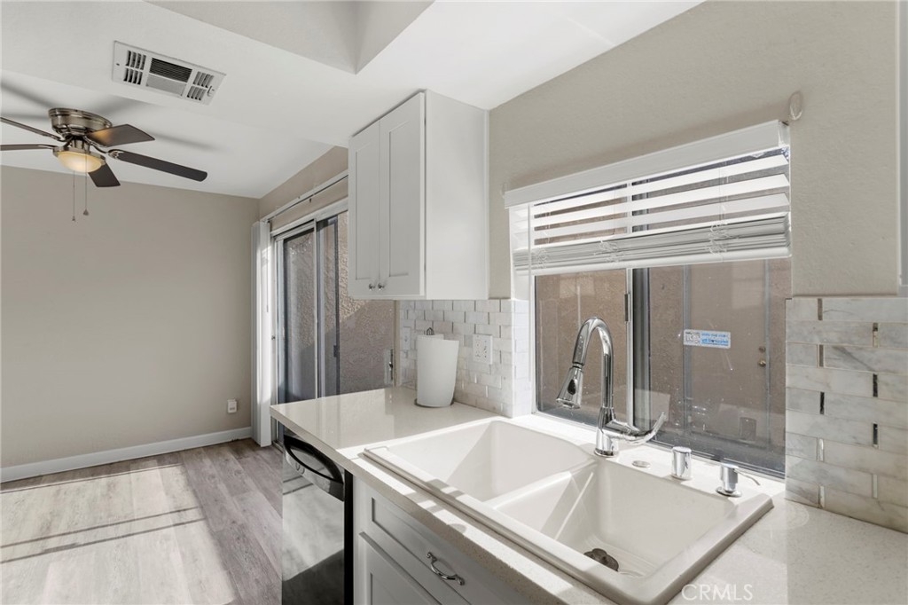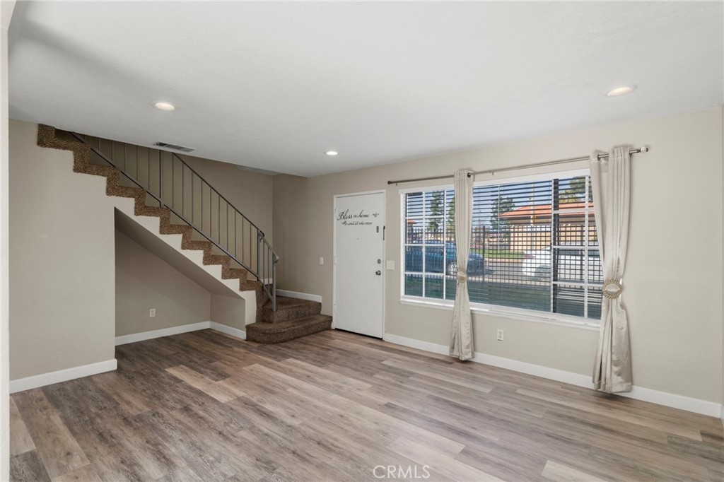 Welcome to a quiet gated community in Moreno Valley! This beautiful 2 story 3 bedroom 2 bathroom townhome is the perfect opportunity to get your foot into homeownership or to upgrade to more space all for under $400,000!! The property was originally remodeled when purchased to include a large living and dining room area with new flooring and fresh paint throughout. The kitchen was freshly updated with cabinets, countertops and stainless steel appliances. Upstairs you will find a large master bedroom with a Jack-n-Jill bathroom and two other perfectly sized bedrooms. The property also features freshly cleaned carpeting upstairs, ac and heat with thermostat, downstairs bathroom with shower, a private patio perfect for entertaining, which leads to your very own two car garage with laundry hookups available. You won’t want to miss this beauty!
