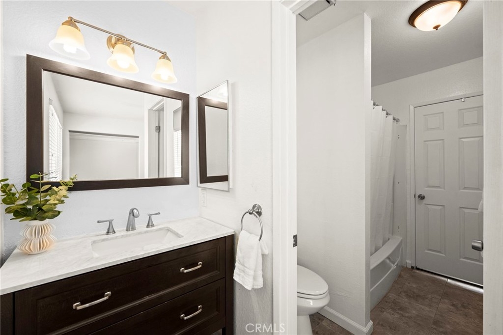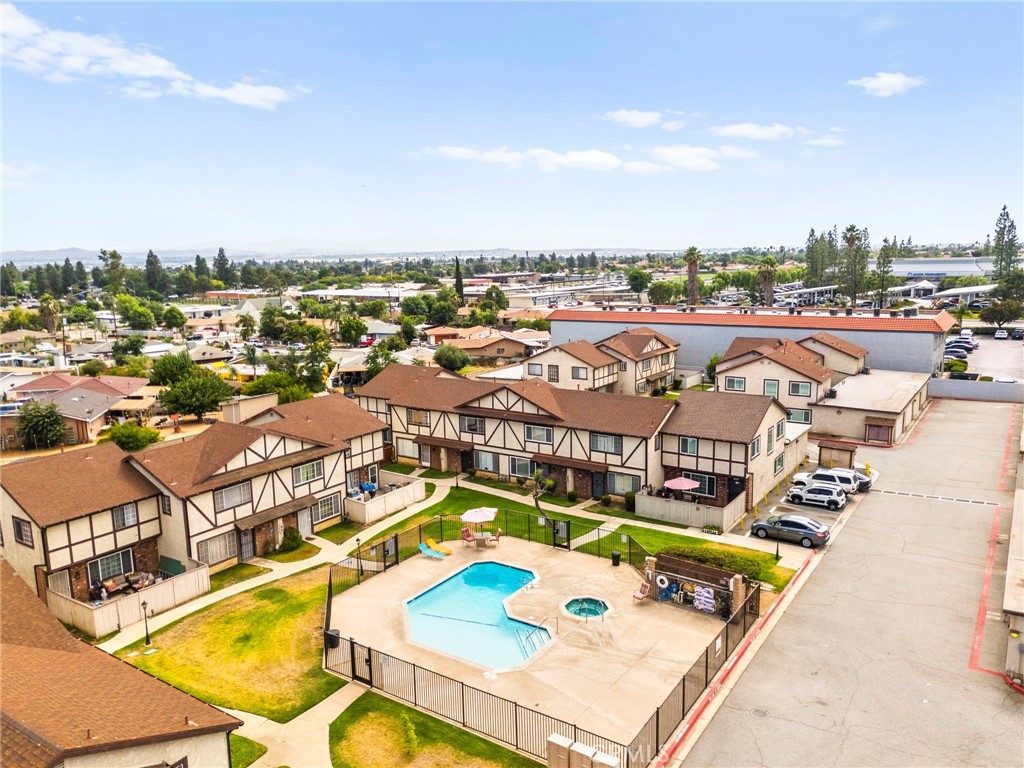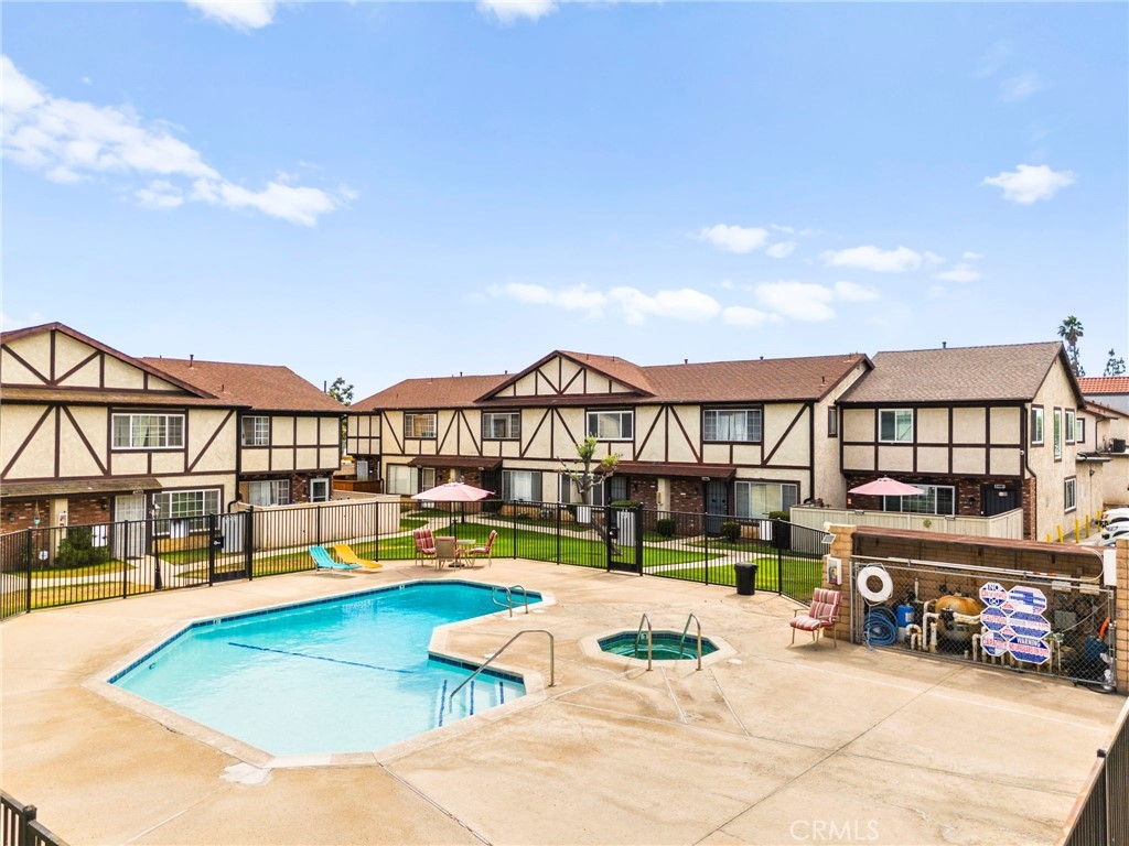 Welcome to this charming 2-bedroom, 2-bathroom townhome in the desirable gated community of Woodland Villas! This two-story home features spacious bedrooms with a Jack and Jill bathroom, beautiful wood floors upstairs, and thoughtful upgrades throughout—including updated lighting, fresh paint, a new water heater, and newer windows. Enjoy the convenience of a full bath on the main level, an attached 2-car garage with washer/dryer hookups, and an additional reserved parking space. The covered patio has been newly upgraded with fresh concrete and offers a private outdoor space that leads directly to the garage. Right outside your front door, you’ll find the community pool—perfect for relaxing or socializing—and you're just minutes from the 60 and 215 freeways, March Air Reserve Base, UCR, shopping, and dining. Comfort, convenience, and location all come together in this move-in-ready gem!
