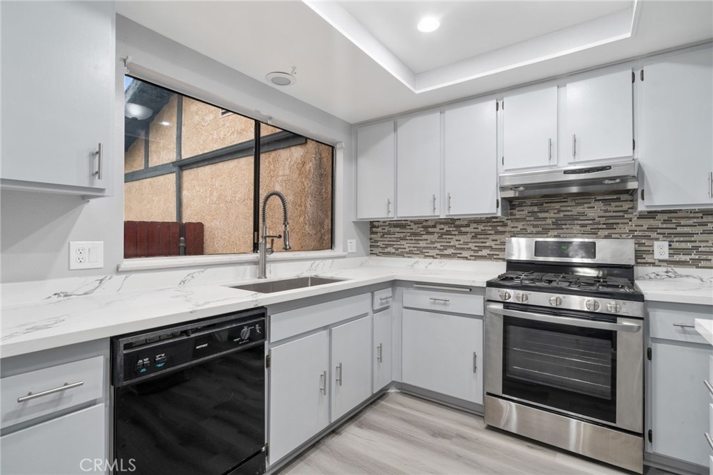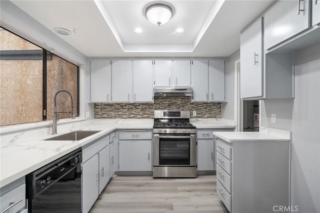 Beautiful gated community of Olive Wood Village. This beautiful Remodeled unit offers 2 bedrooms, 2 bath with two parking spaces. Open floor plan with tile floors, Remodeled kitchen cabinets, New granite countertop, stainless steel dishwasher and two large bedrooms. A laundry closet inside the condo and a private patio with a side entrance. Unit comes with a covered carport and uncovered parking space. This community features a pool, spa, clubhouse, and mail room and ample guest parking. Call to book an appointment to view this beautiful remodeled unit.