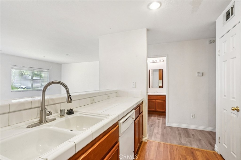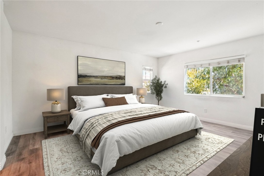 Welcome to this spacious residence in the sought-after Palacio De Oro community, offering comfort, convenience, and modern living. Go inside to find an inviting open-concept layout where the living, dining, and kitchen areas flow seamlessly together—perfect for entertaining or everyday living. The home features laminate flooring, a main-level bedroom and full bathroom, plus a private gated front patio with direct access from the dining area—ideal for outdoor dining or morning coffee. Upstairs, the huge primary suite impresses with a spacious walk-in closet and en suite bathroom with dual vanities, while an additional bedroom and bathroom provide plenty of space for family or guests. Enjoy the benefits of an attached 2-car garage, and take advantage of the community’s amenities including outdoor cooking and picnic areas surrounded by beautifully landscaped grounds. Conveniently located near markets, schools, and dining options, this home offers the perfect blend of style and practicality.