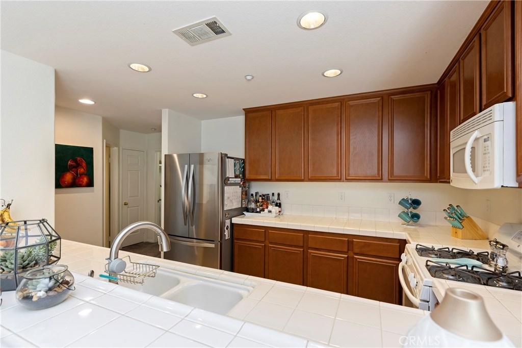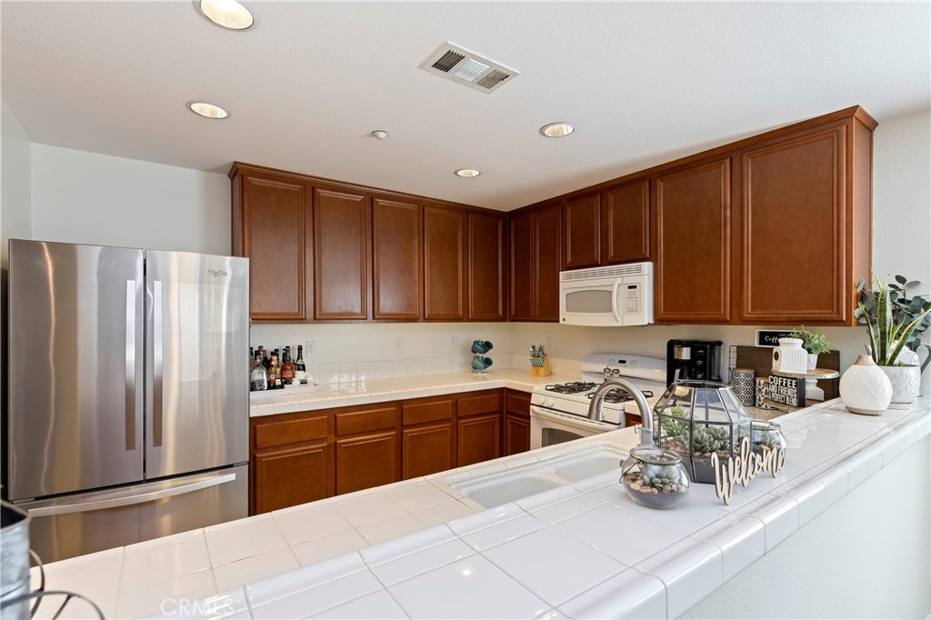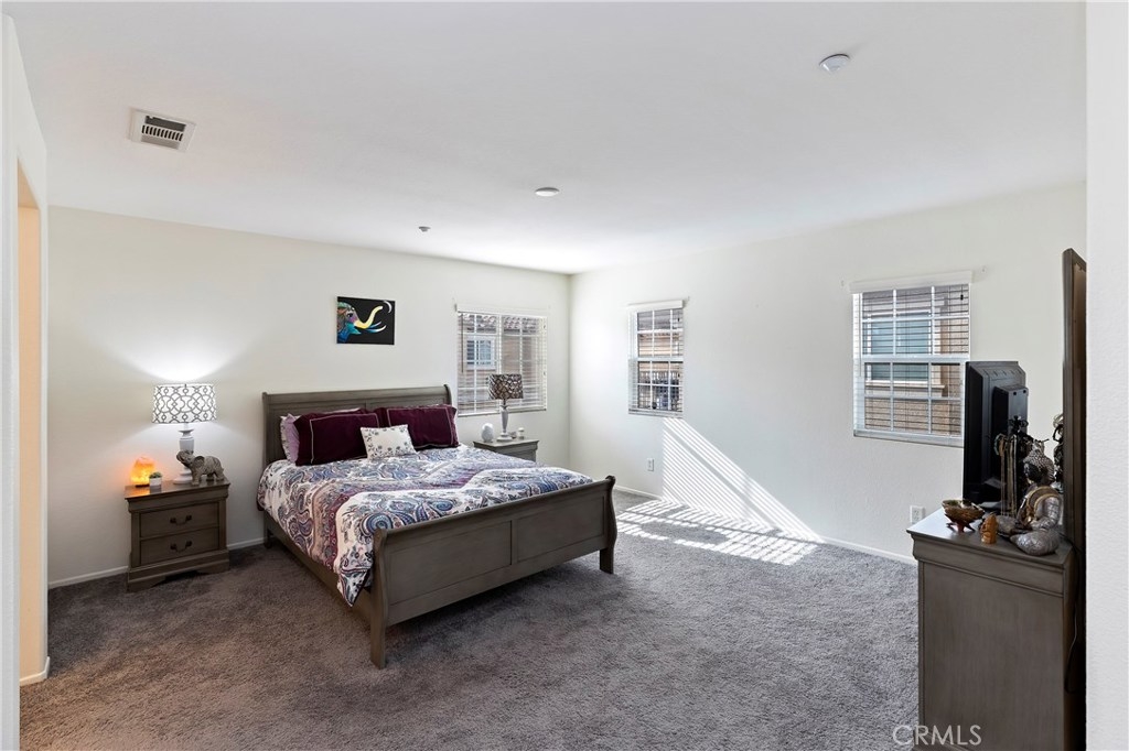 Enjoy carefree living in this low maintenance corner-unit in the desirable gated community of Palacio de Oro North in Moreno Valley. Home features 1,444 square feet; 2 bedrooms; 2.5 bathrooms; open and bright living spaces, dedicated dining area and kitchen w/ ample storage space and access to front fenced patio. Spacious master bedroom offers on-suite bathroom w/ walk-in closet, dual sinks, shower/tub and private water closet. Guest bedroom is situated down the hall just passed the full guest bathroom. Other features include: newer carpet throughout, freshly painted bathroom vanities, lots of storage space, indoor laundry room and attached finished 1-car garage w/ direct access. Don't miss this opportunity to own this home that's conveniently close to everything including shopping, dining, schools, Moreno Valley College and Lake Perris. Too much to list - A MUST SEE!