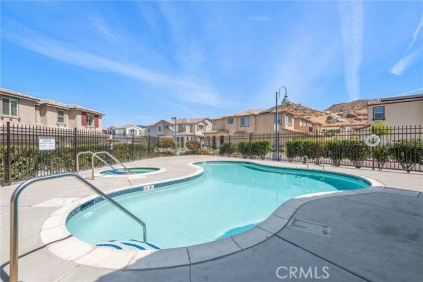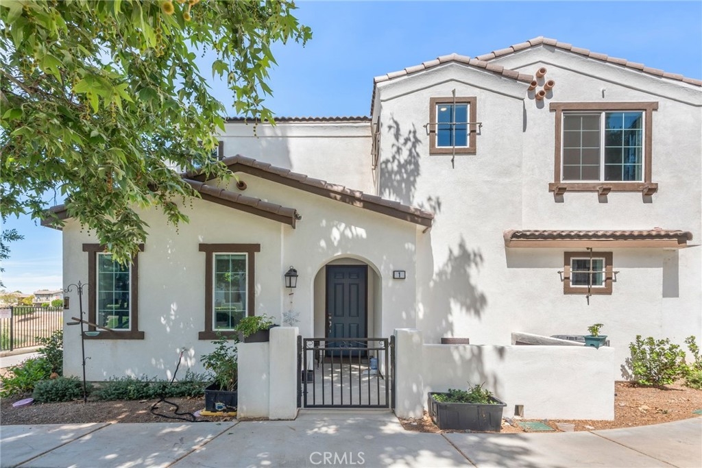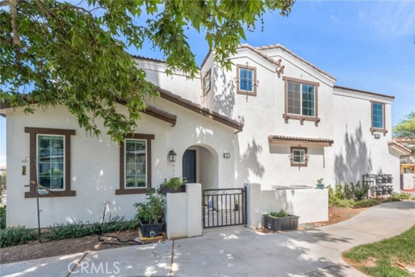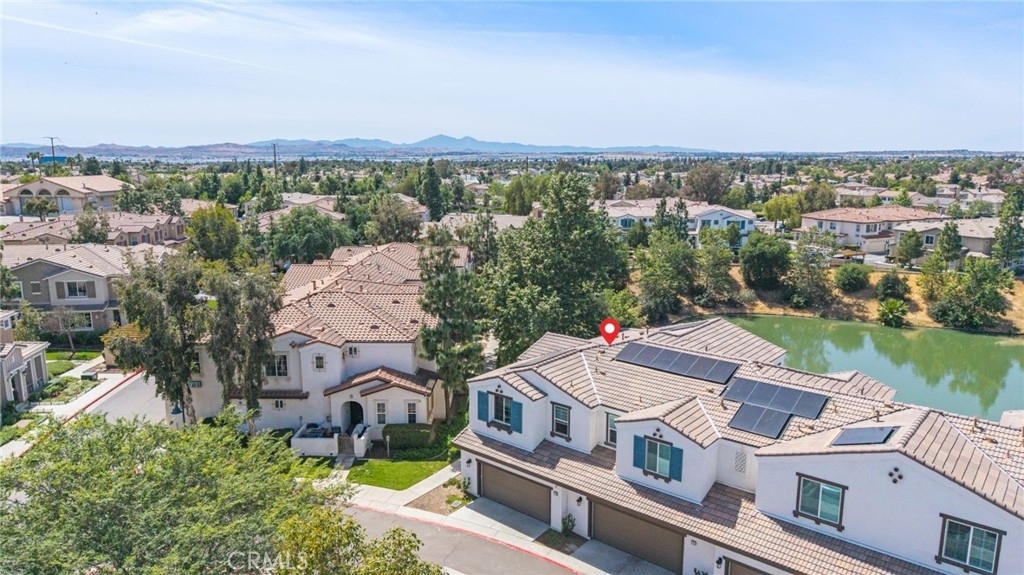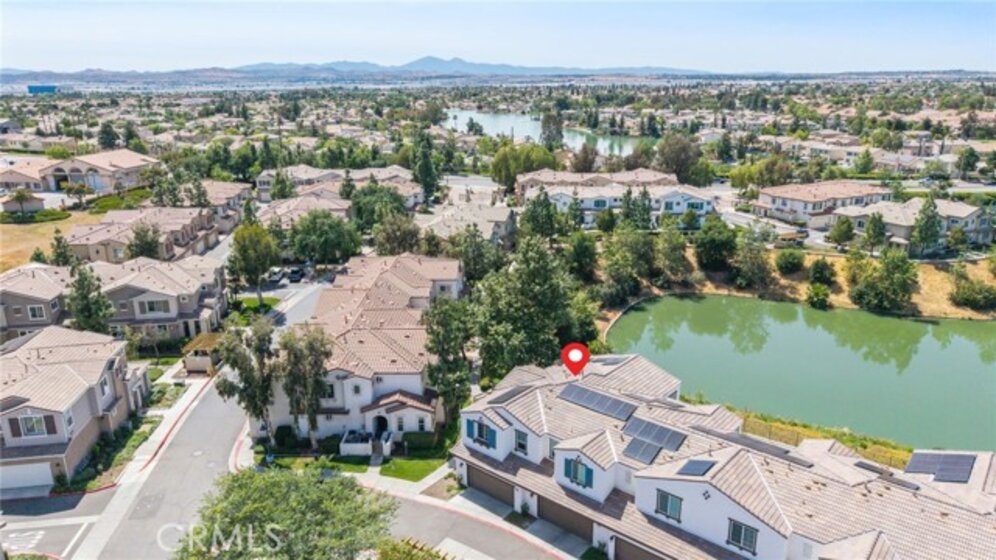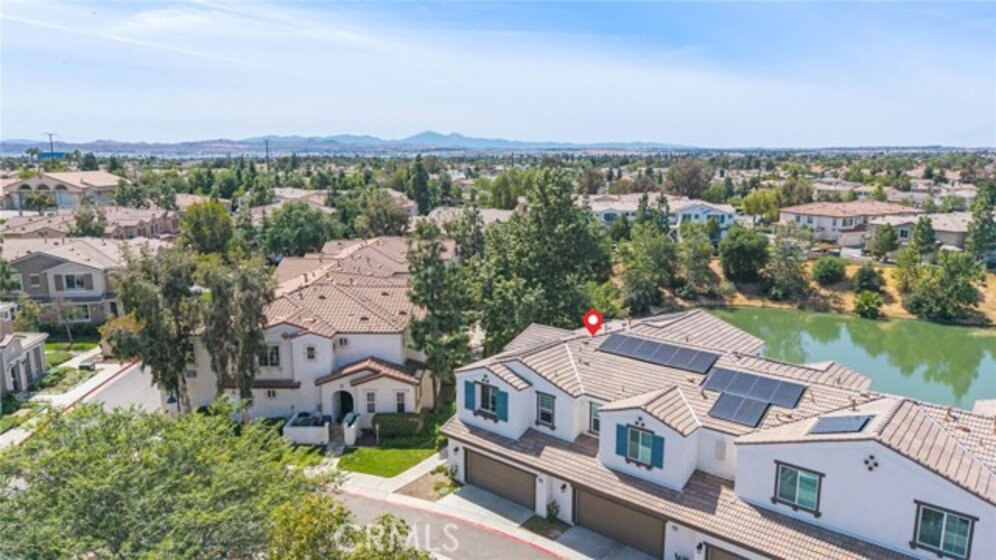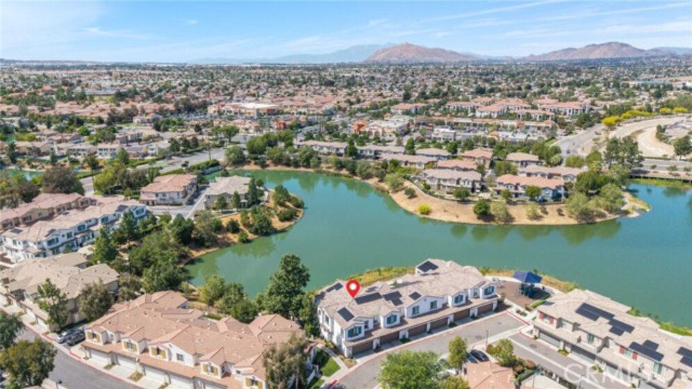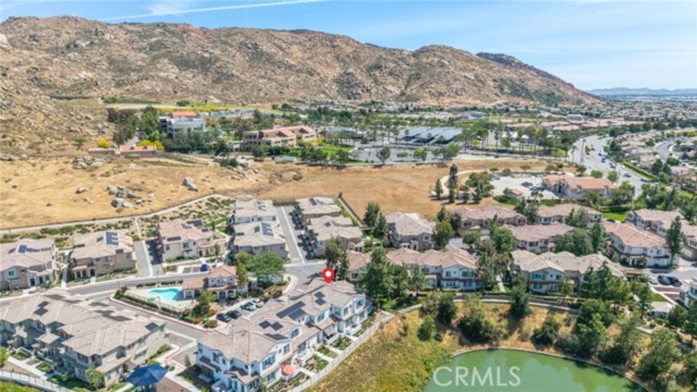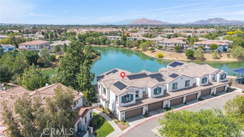 Welcome to this beautifully designed 2024-built Spanish Colonial residence located in a gated Moreno Valley community with scenic lake views. This spacious 4 bedroom, 3.5 bathroom home offers 2,116 sq ft of modern living with thoughtful upgrades and an open, functional layout. Situated on a desirable corner unit, the home features a 2-car garage, paid-off solar panels, and a private courtyard entry that adds charm and outdoor living space. Inside, the open floor plan is filled with natural light and enhanced by upgraded flooring, recessed lighting, and a modern kitchen with stainless steel appliances, a large island peninsula, pantry and ample storage. The layout is ideal for flexibility and comfort with two owner’s suites upstairs, both featuring double sink vanities, while the primary suite offers beautiful lake views and walk in closet. The other suite has views of the mountains and pool. A downstairs flex room can easily function as a bedroom, office, or guest suite, also enjoying views of the lake from the living area. Residents enjoy resort-style amenities including a clubhouse, pool/spa, walking trails with lake views, and a community park just steps away. The location is exceptionally convenient—within walking distance to Moreno Valley College, Lasselle Elementary, shopping, and dining, and just minutes to Riverside University Health System Medical Center, Kaiser Permanente, and Lake Perris Recreation Area. Enjoy beautiful sunsets over the lake, modern energy efficiency, and the convenience of living in one of Moreno Valley’s newest communities.