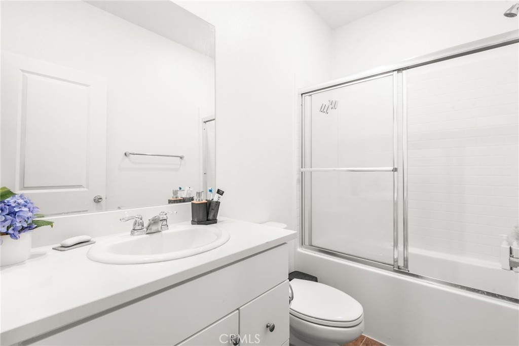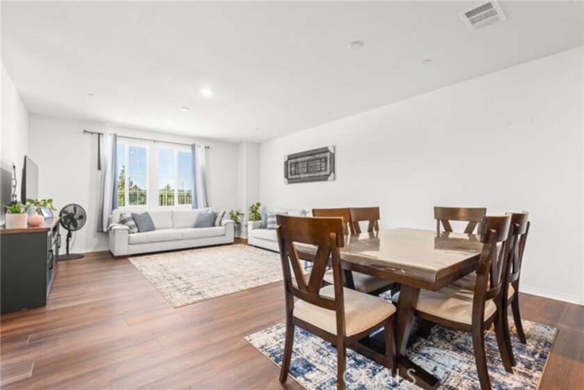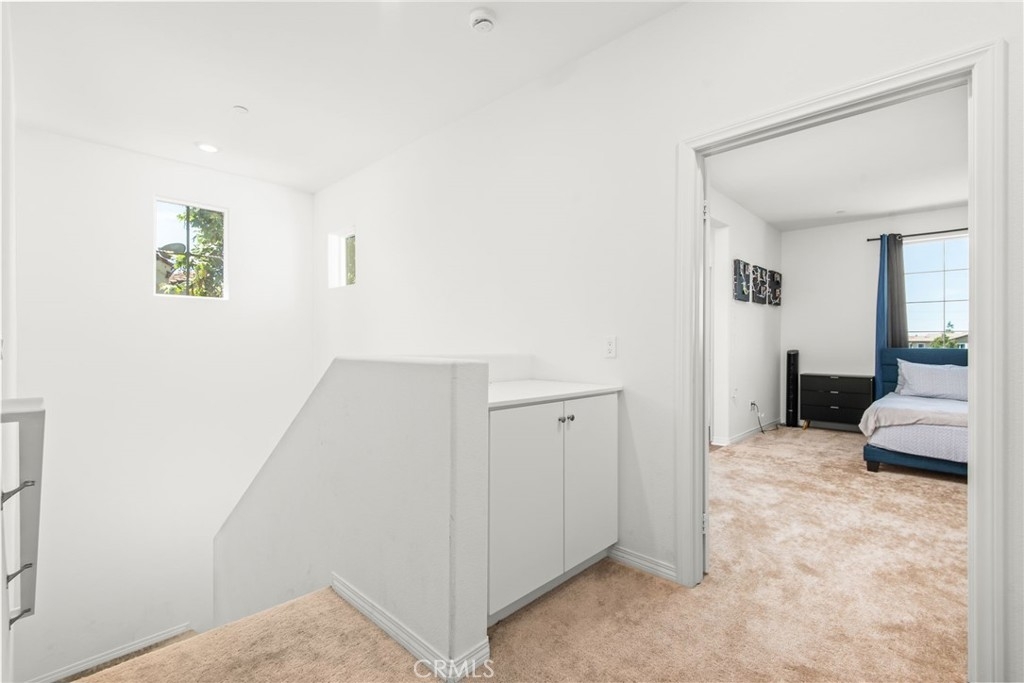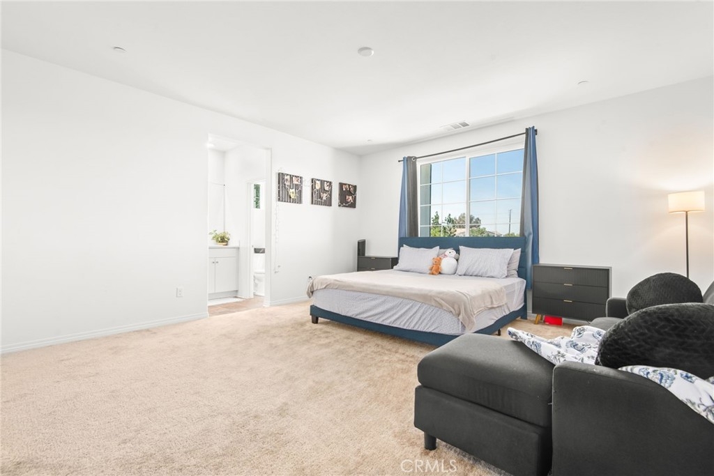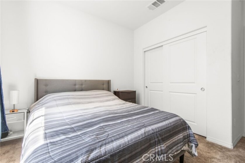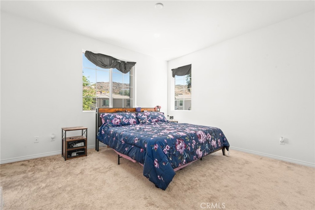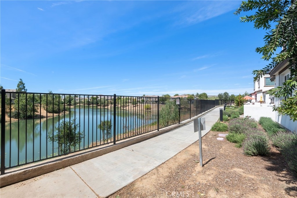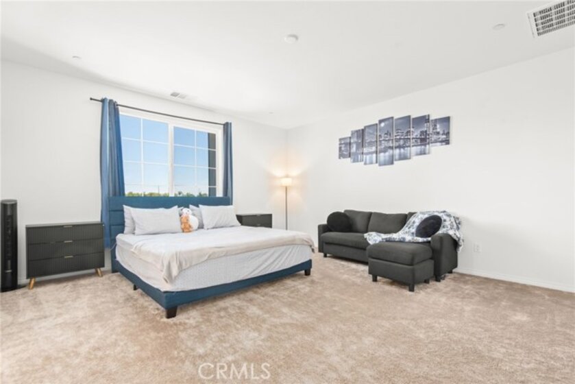 Welcome to this beautifully designed 2024-built Spanish Colonial residence located in a gated Moreno Valley community with scenic lake views. This spacious 4 bedroom, 3.5 bathroom home offers 2,116 sq ft of modern living with thoughtful upgrades and an open, functional layout. Situated on a desirable corner unit, the home features a 2-car garage, paid-off solar panels, and a private courtyard entry that adds charm and outdoor living space. Inside, the open floor plan is filled with natural light and enhanced by upgraded flooring, recessed lighting, and a modern kitchen with stainless steel appliances, a large island peninsula, pantry and ample storage. The layout is ideal for flexibility and comfort with two owner’s suites upstairs, both featuring double sink vanities, while the primary suite offers beautiful lake views and walk in closet. The other suite has views of the mountains and pool. A downstairs flex room can easily function as a bedroom, office, or guest suite, also enjoying views of the lake from the living area. Residents enjoy resort-style amenities including a clubhouse, pool/spa, walking trails with lake views, and a community park just steps away. The location is exceptionally convenient—within walking distance to Moreno Valley College, Lasselle Elementary, shopping, and dining, and just minutes to Riverside University Health System Medical Center, Kaiser Permanente, and Lake Perris Recreation Area. Enjoy beautiful sunsets over the lake, modern energy efficiency, and the convenience of living in one of Moreno Valley’s newest communities.