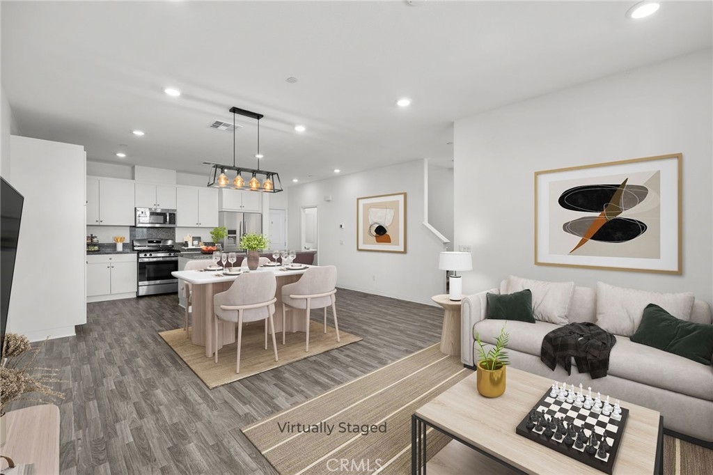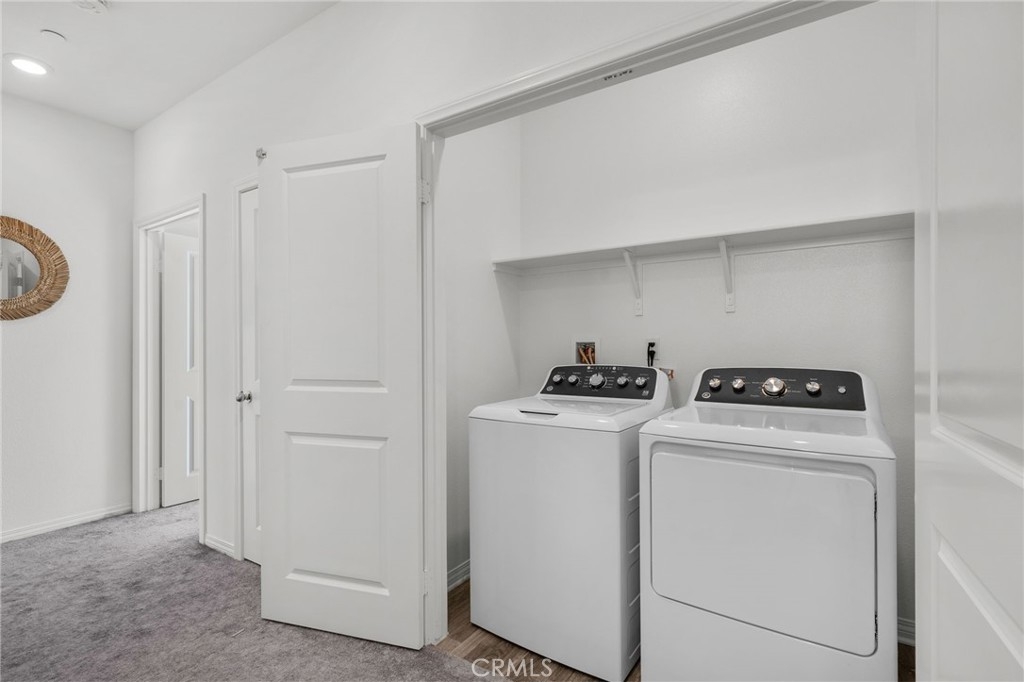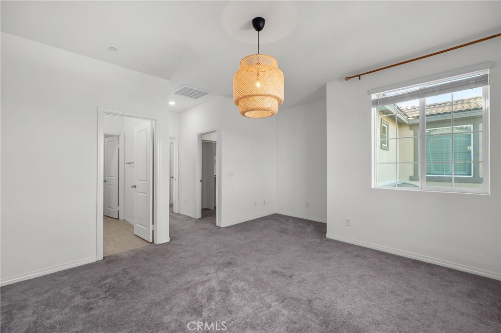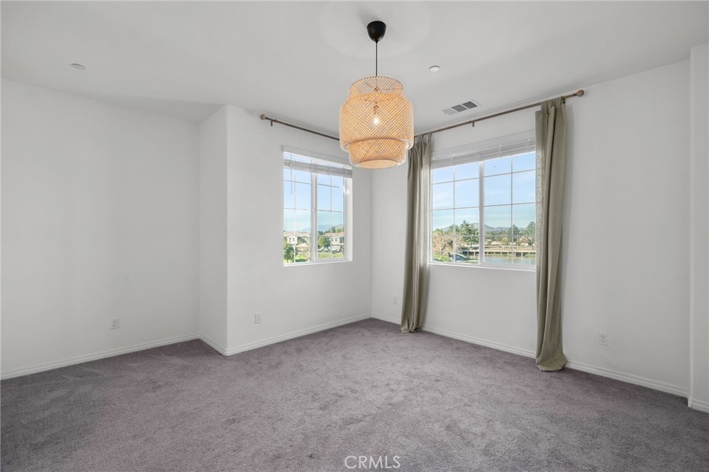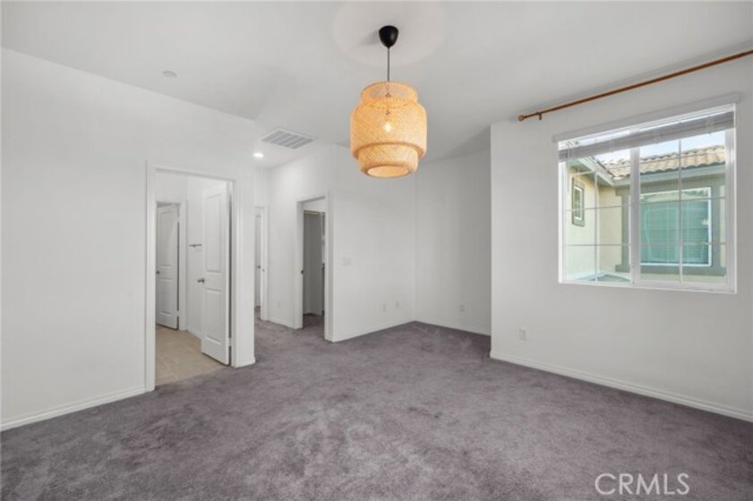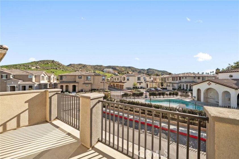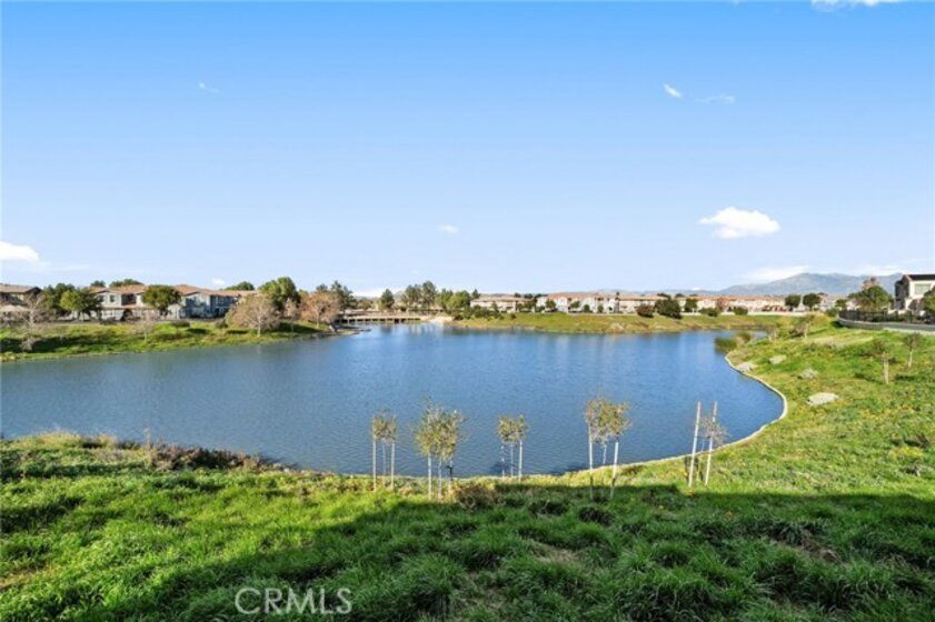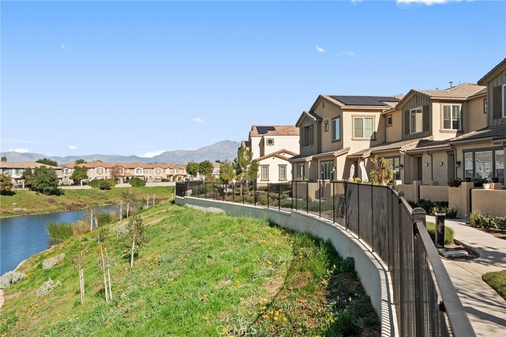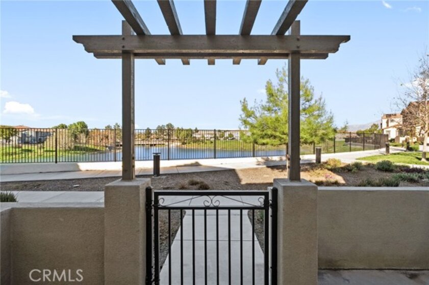 This beautifully upgraded Lennar home, built in 2022, offers 2 bedrooms and 2.5 baths in the highly desirable, gated Aspen Hills community of Moreno Valley. A charming gated courtyard porch welcomes you in, setting the tone for the thoughtful design found throughout the home. Inside, the main level features a spacious family room and a designated dining area that flows seamlessly into the modern kitchen, complete with a large island—perfect for everyday living and entertaining alike. Large windows fill the home with natural light and frame peaceful views of the community lake, creating a calm, open atmosphere that feels like a private retreat. A convenient half bath downstairs adds everyday functionality for guests while maintaining the privacy of the upstairs living spaces. Upstairs, the home features dual primary suites, each with its own en-suite bath and separated for maximum comfort and privacy. One bedroom includes a generous walk-in closet, while the other offers a private balcony with views overlooking the community pool. An upstairs laundry room adds to the home’s practical and efficient layout. The design is modern yet warm, efficient yet spacious, with paid-off solar providing energy efficiency, comfort, and long-term savings. Residents of Aspen Hills enjoy a resort-style lifestyle with access to a pool and spa, playground, scenic walking trails surrounding the private lake, parks, and a spacious community center—all within a secure, gated setting. Ideally located near shopping, dining, entertainment, and Riverside City College, this home offers the perfect blend of convenience, comfort, and serenity.