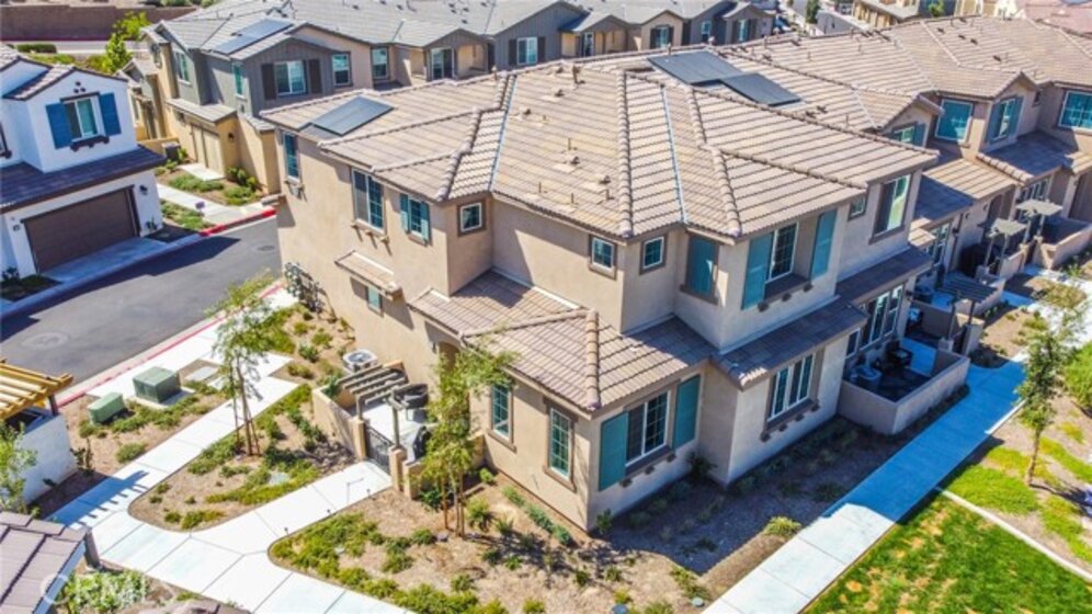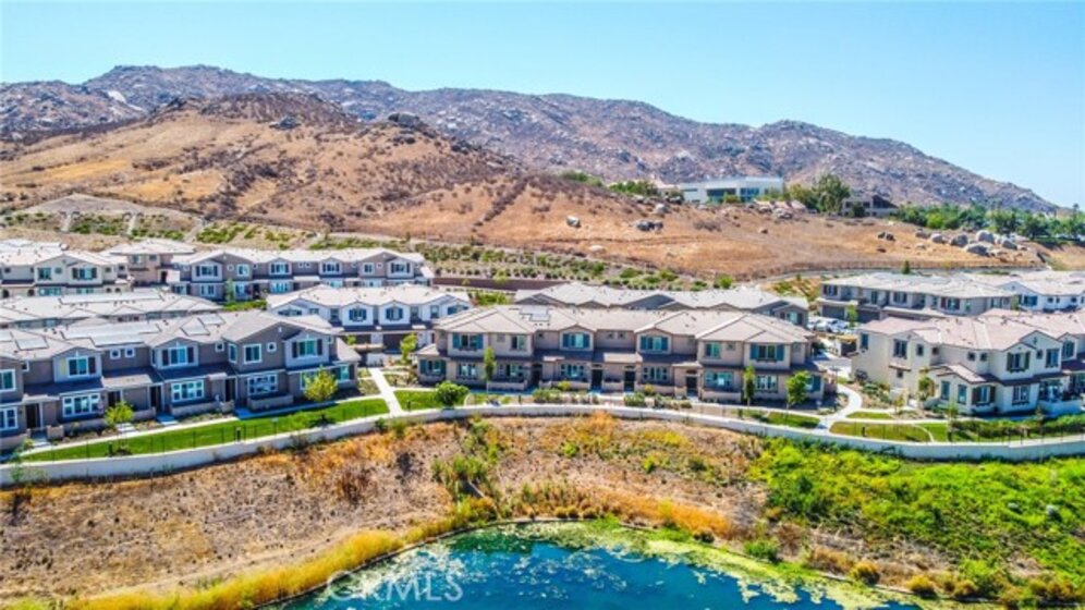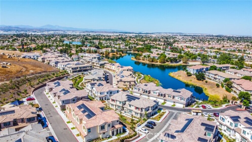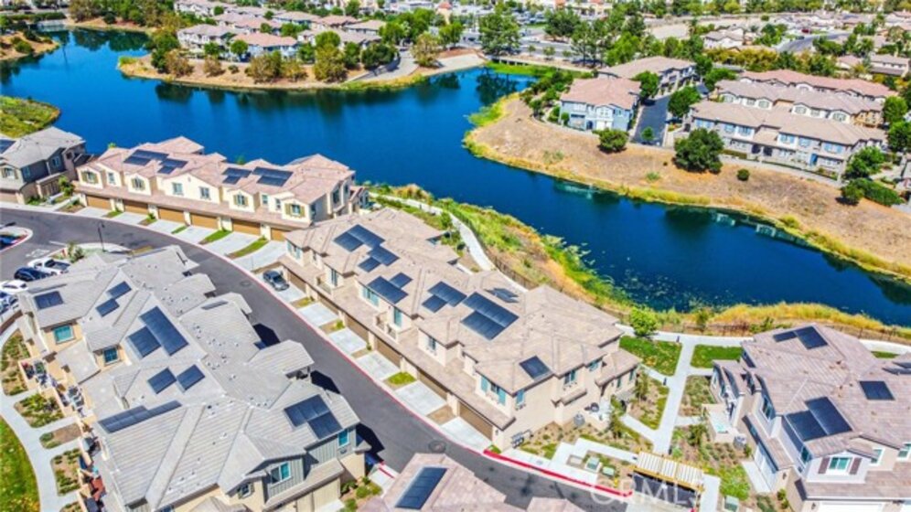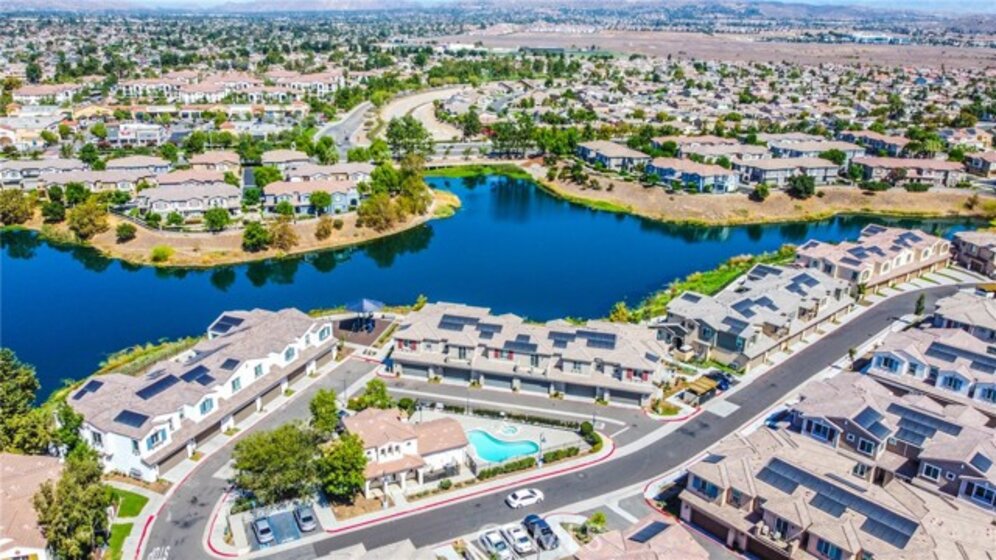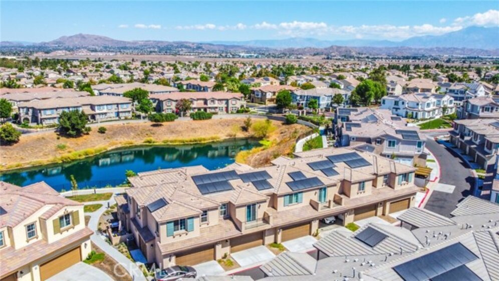 Discover the perfect blend of comfort, style, and convenience in this stunning corner-unit condo located in the highly desirable gated community of Aspen Hills. With over 2,100 sq. ft. of living space, this 4-bedroom, 3.5-bath home (one bedroom currently set up as an office) offers room for everyone. Step inside to find a bright, open layout featuring a modern kitchen with a large island peninsula, perfect for cooking and entertaining. The upstairs private primary suite boasts serene lake views, a walk-in closet, and a spacious en-suite bathroom. Enjoy your morning coffee or evening sunsets from your private front patio overlooking the lake. The community itself offers resort-style amenities including a sparkling pool and spa, all within a secure gated setting. With solar panels for energy efficiency, corner-unit privacy, breathtaking views, and a location just minutes from shopping, dining, and medical care, this home offers the very best in lakefront living in Moreno Valley.