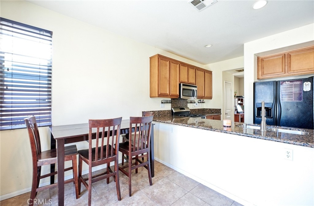 Very spacious Two Story Condo built in 2008 is very close to Shopping Mall, Warehouse Store, lots of Dining choices, Gas Stations, Grocery Stores, and the 60 and 215 freeways. The unit faces the green belts the community has to offer, perfect for those sitting on your front porch in the evenings. Inside, downstairs is fully tiled and offers formal Dining room and Living room and a half bath, perfect for guests. The open concept Kitchen with granite countertops is absolutely stunning. The second floor is where you will find the Master Bedroom with its FULL Bathroom and Walk-In Closet. There are 2 more spacious bedrooms upstairs along with some linen storage and your laundry room! You'll enjoy your privacy in the backyard with the solid vinyl fencing surrounding much of the patio. The HOA is very affordable and includes a playground and a park! You truly have some wonderful features in this home, it wont last long. Come see it today!