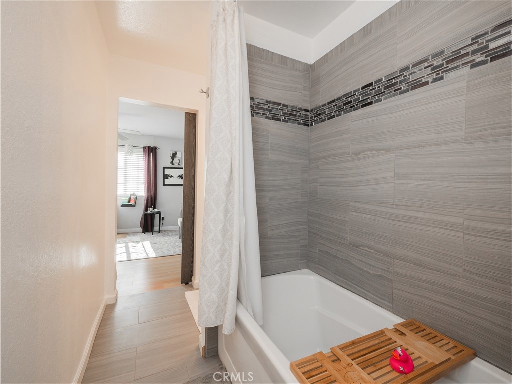 Beautiful 2 Bedroom 2 Bath Condominium located in the gated community of Woodland Villas situated across from the pool. This home features a remodeled kitchen with granite counter tops, stainless steel sink, refinished cabinets, new hardware, pendant lighting, tile flooring and plenty of cabinet space.The dining area and spacious family room have laminate flooring, double pane windows throughout the home. The downstairs bathroom has a walk in shower, tile flooring, new vanity and new lighting. Both bedrooms are situated upstairs, the master bedroom has a his and hers closet, laminate flooring, ceiling fan and a barn door that leads to a remodeled jack and jill bathroom which features a new vanity and back splash, new porcelain tile flooring, new lighting, new porcelain tile shower, new 26" deep soaker bathtub. The second vanity has granite counter tops, new lighting and hardware. The second bedroom is very spacious with a barn door, laminate flooring and plenty of closet space. The 2 car garage has laundry hook ups, plenty of storage space and leads into a private nice size patio that leads into the home. The well maintained community features a gated sparkling swimming pool and spa, lush landscaping with ample parking for guests, trash service and exterior maintenance included as well. Conveniently located near the 60 and 215 freeways. Also close to March AFB, UC Riverside, Hospitals, Shopping and Dining. This home is gorgeous and ready for you to move in and make your own!