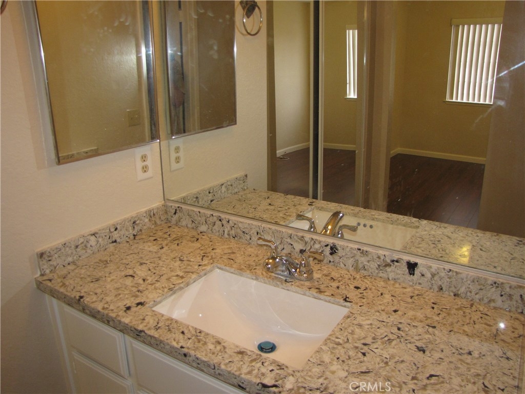 This darling three bedroom, two bath, two-story condo in Moreno Valley's Woodland Villas Condominiums is in turnkey condition and ready for you to move into! Wonderful features include fresh new paint, new laminate flooring, new quartz bathroom counters, new sinks and faucets in the kitchen and baths and much more. You will love the kitchen with lots of storage and a great breakfast counter. Other features include the downstairs bath and powder room with shower, the private fenced front patio, only one common wall with a neighbor, and direct access to your private two car garage, The association pool and spa are wonderful areas for relaxation after work and on the weekends. This neighborhood of homes is located close to shopping, dining, March Air Reserve Base, and is close to easy freeway access. Come and see it, it won't last long!
