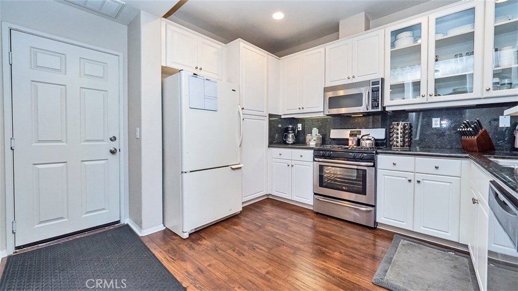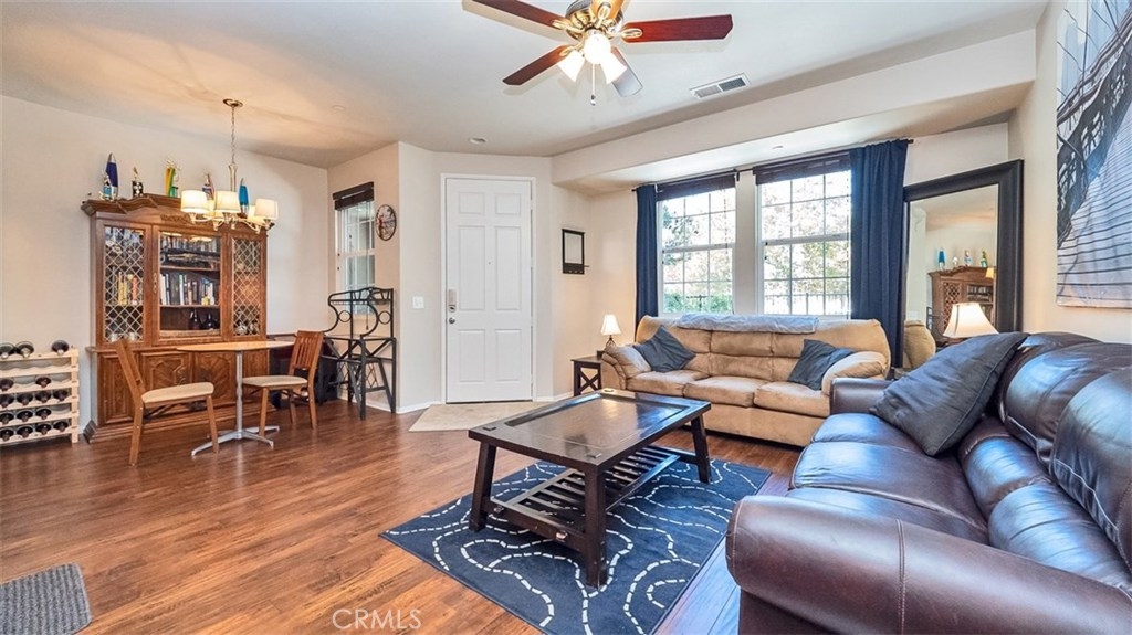 This beautiful condo in the Iris Landings gated community of Moreno Valley was built in 2006, remodeled in 2015 and again freshly painted. This condo features hardwood laminate flooring, tile bathrooms and carpeted upstairs. The kitchen has recessed lighting, granite countertops and extended storage space with stainless steel appliances. Dining room and living room have a spacious open feel. Offering 2 large bedrooms with each their own attached full bathroom and a guest bathroom downstairs. The master bathroom has a walk in closet and dual vanities. Large indoor laundry room is located upstairs central to the bedrooms with additional storage space. 2 car attached garage make parking convenient, with guest parking only steps away. HOA amenities include Moreno Valley Ranch with a pool, spa, basketball court, gym, BBQ area and more. Centrally located next to Moreno Valley College, the supermarket, restaurants, transportation and more. Dont miss out, schedule your showing today!