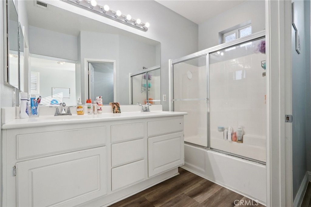Professional photos are coming soon. Better than new, Stunning Condo in Rancho Bellagio area of Moreno Valley. Conveniently located near all amenities, shopping areas, restaurants, entertainment, and easy freeway access. The home boast nearly 1,500 Square feet of living space with 3 bedrooms, Including a master bedroom with private bathroom with double sinks and walk in closet. An additional full bathroom with laundry area on the hallway and a half of bath on the first floor. Upon entry, you will be greeted by recessed lighting, a luxury laminate floors throughout the house, double pane windows with shutters. The kitchen features plenty of cabinet space with a center kitchen island and open to the dinning area with a living room that has a cozy fireplace. The property also features a large back patio with landscaping and room for children to play. Enjoy the amenities in the community such as a pool, spa and lounge area.