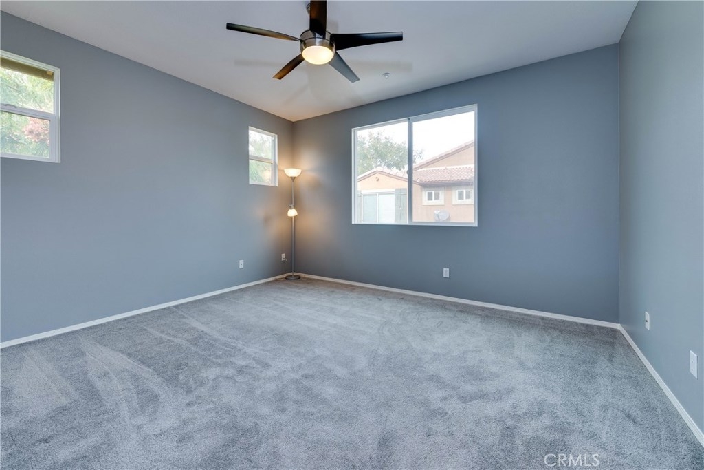 Turnkey & Upgraded Condo in Promontory Pointe Community home boast 3 bedrooms and 2 ½ baths 1486 sq.ft. 2 car attached garage with direct access to your home. This is wonderful well kept condo with Bamboo flooring in living room & formal dining area, upgraded vinyl flooring in Kitchen, pantry and downstairs bathroom. LG models appliances included with new stainless steel dishwasher, microwave, range and refrigerator. LED lighting throughout the condo and ceilings fans in Master bedroom and living room. Kitchen comes with an abundance of cabinets and counter top space and new top mount stainless steel sink. Master bedroom spacious includes custom walk-in closet and en-suite bath double sink basins and garden tub. Upstairs laundry room boast overhead cabinets for supplies include LG washer and dryer. Backyard space is perfect for entertaining family and friends with lots of space for seating and lounging. Great amenities with this very maintained complex, including Community Pool & Spa with large hosting areas and walking trails. This desirable community is just minutes away from all sorts of great adventures. Minutes from beautiful parks, walking distance from Moreno Valley Golf Course, close to Kaiser & Regional Hospitals, shopping and the stunning Lake Perris. This is a must see beautifully maintained condo in a very desirable area.